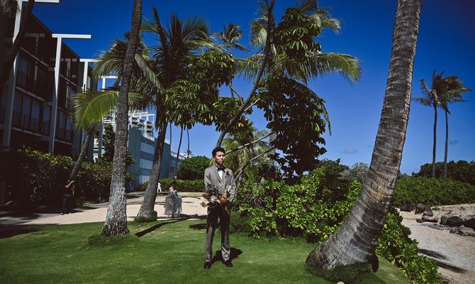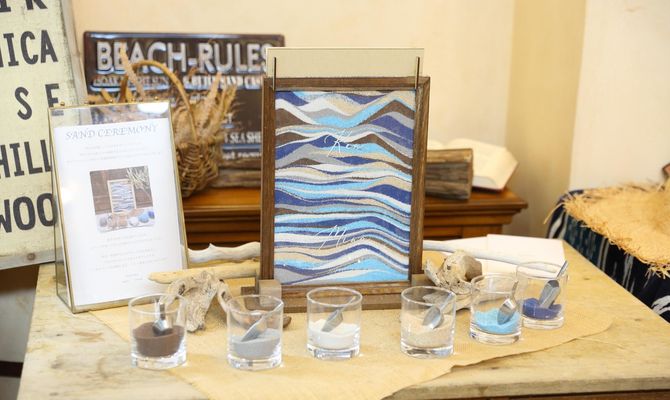 新婦のすきな夏がテーマです!コンセプトは 西海岸をイメージし、サーファーが住んでそうな家のような雰囲気に。待合室ではジャックジョンソンの映画をずっと流していました。 夏というと貝殻やヒトデなどのマリン系が浮かぶかもしれないですが、そういう感じにはしたくありませんでした。