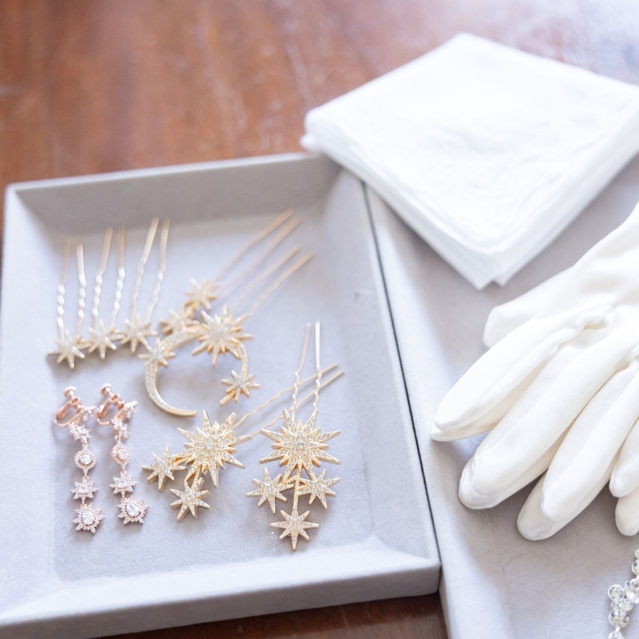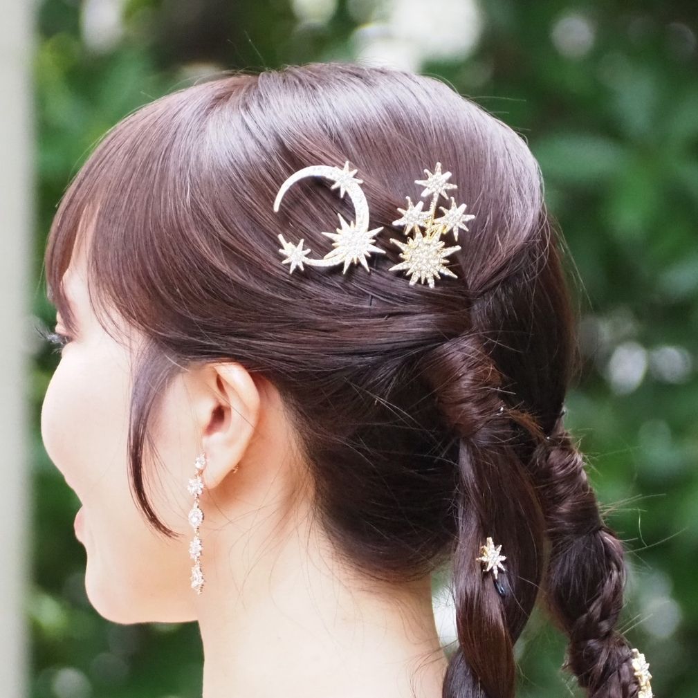 お色直しはテーマに合わせて、月と星をモチーフにしたヘアピンをつけました。