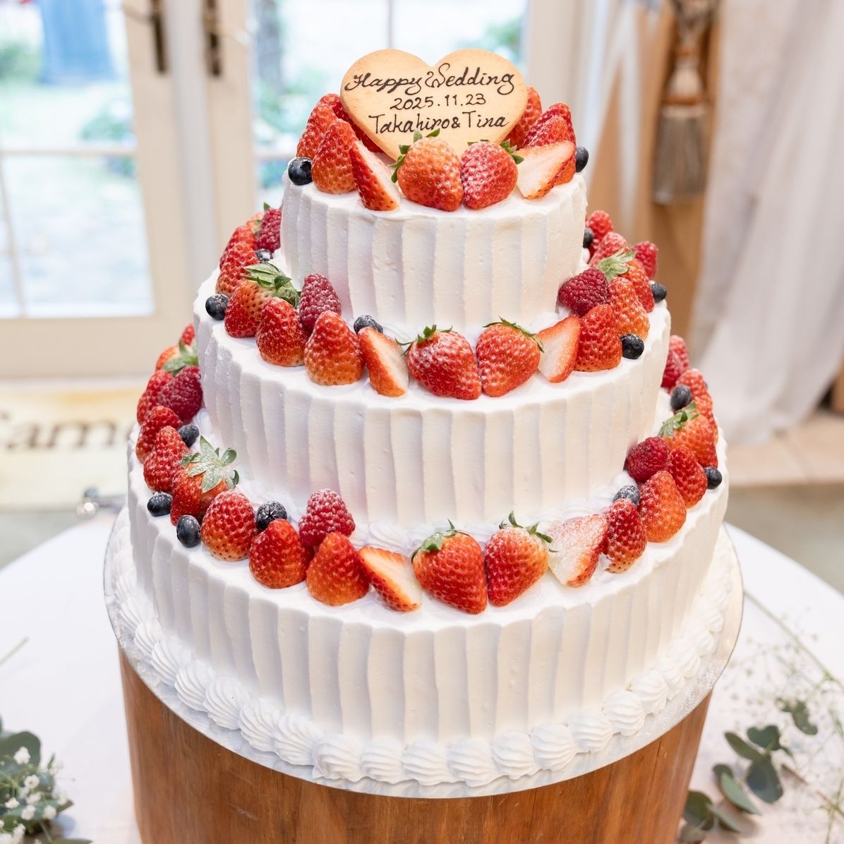 チョコドリップしたものなどアレンジされたケーキがありましたが、王道の丸3段ケーキでケーキ入刀をしたかったのでオプションはつけませんでした。