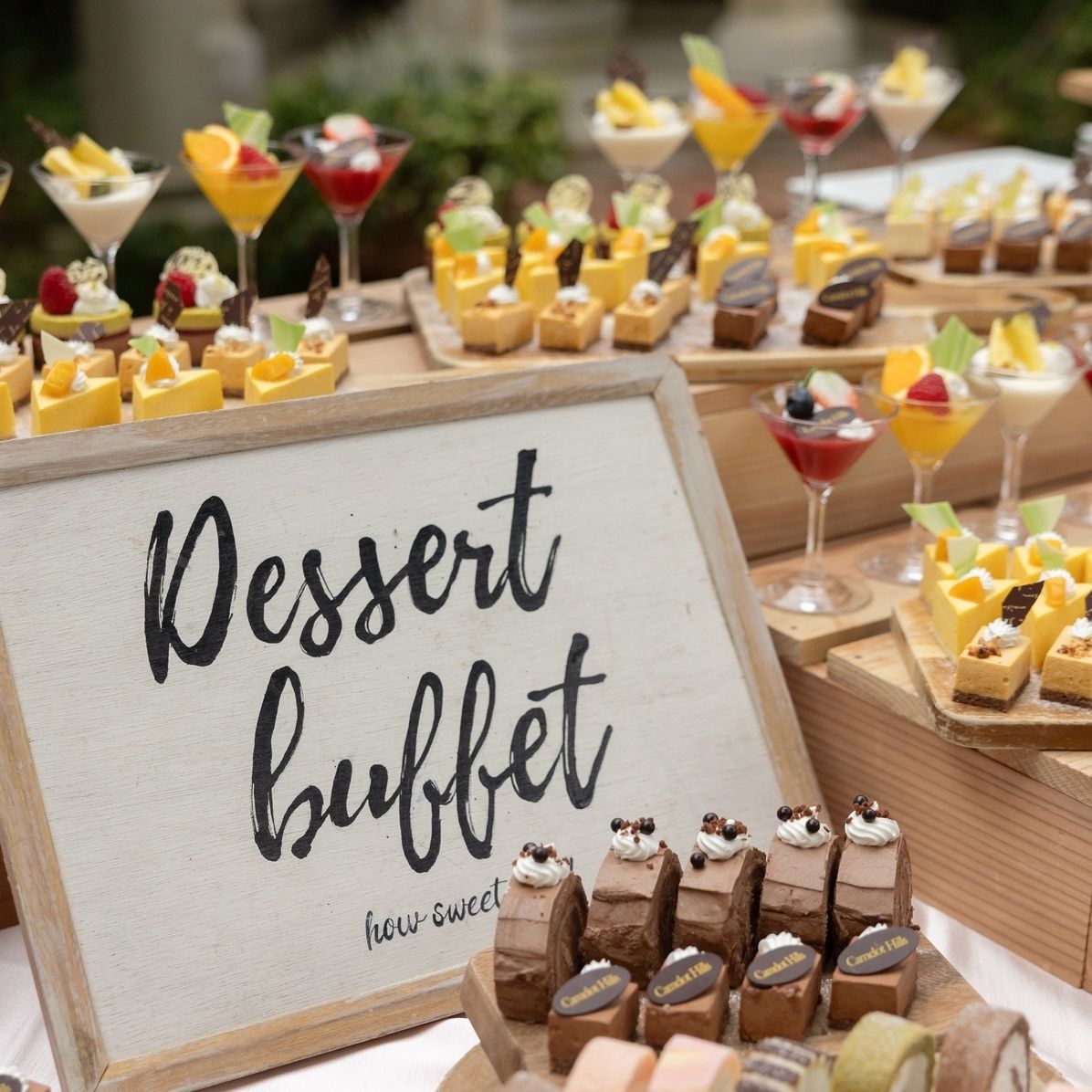 デザートビュッフェはマストで入れました。当日ゲストの盛り上がりが半端なくて取り入れて良かったなぁと思いました。