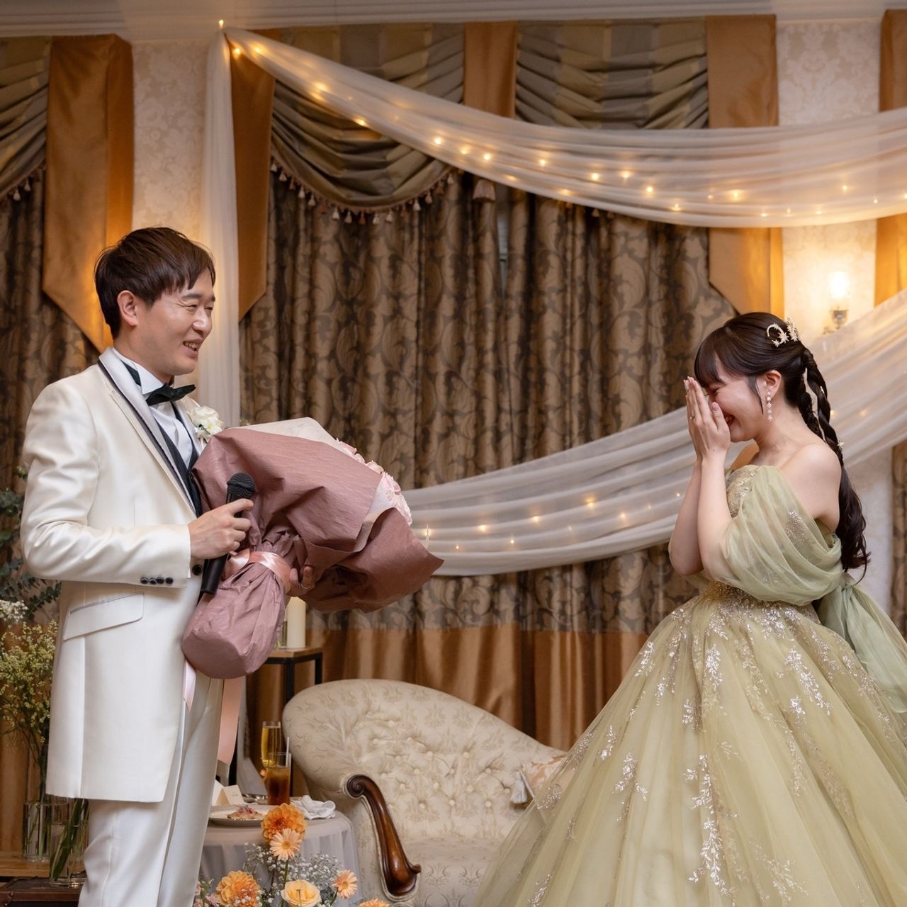 そんな中、主人からのサプライズがあり、しっかり者だけど不器用で、そんな主人からの愛のこもった花束もらったことで、改めて結婚式を通して思いやりと愛を感じることができました。