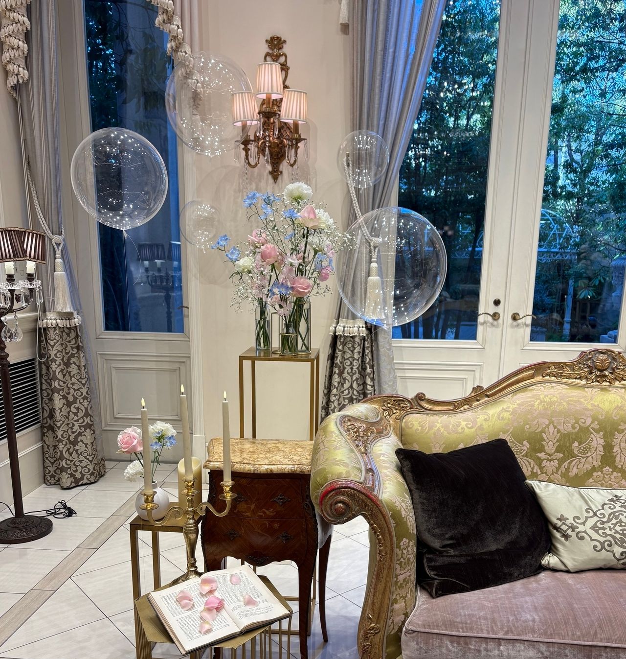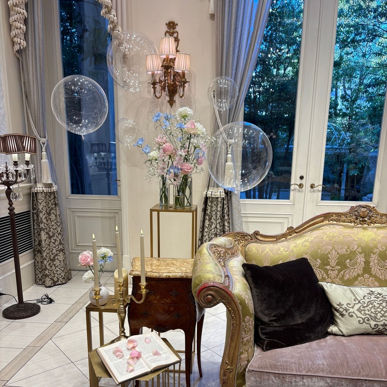 やわらかな光に包まれた会場は、まるで物語の中の世界のようで、上品さと可愛らしさを兼ね備えています。