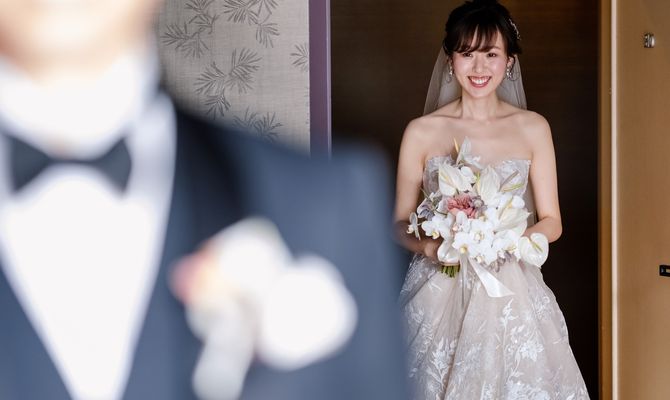 アットホームな雰囲気でゲストに楽しんでもらうこと、普段は伝えられない感謝の気持ちを伝えること、わたしたちの拘りと好きを詰め込んだ空間づくりを意識しました♡テーマカラーはくすみピンクと白とゴールド。大理石調のデザインが好きでウェルカムスペースや装花にもさりげなく入っているのもポイントです。