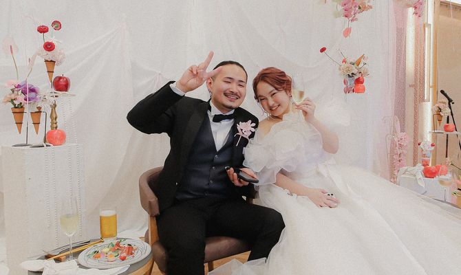 SNSでTHE SORAKUENを知り、景色と決まった型にとらわれず自由なスタイルで私たちの「好き」を表現できる点に惹かれ、こちらの式場を選びました。