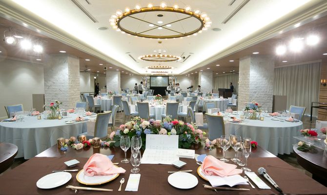 海に浮かぶホテルで、カーテンを開けた瞬間に青の世界が広がる、まるで海の上にいるような開放感溢れる式場でした。