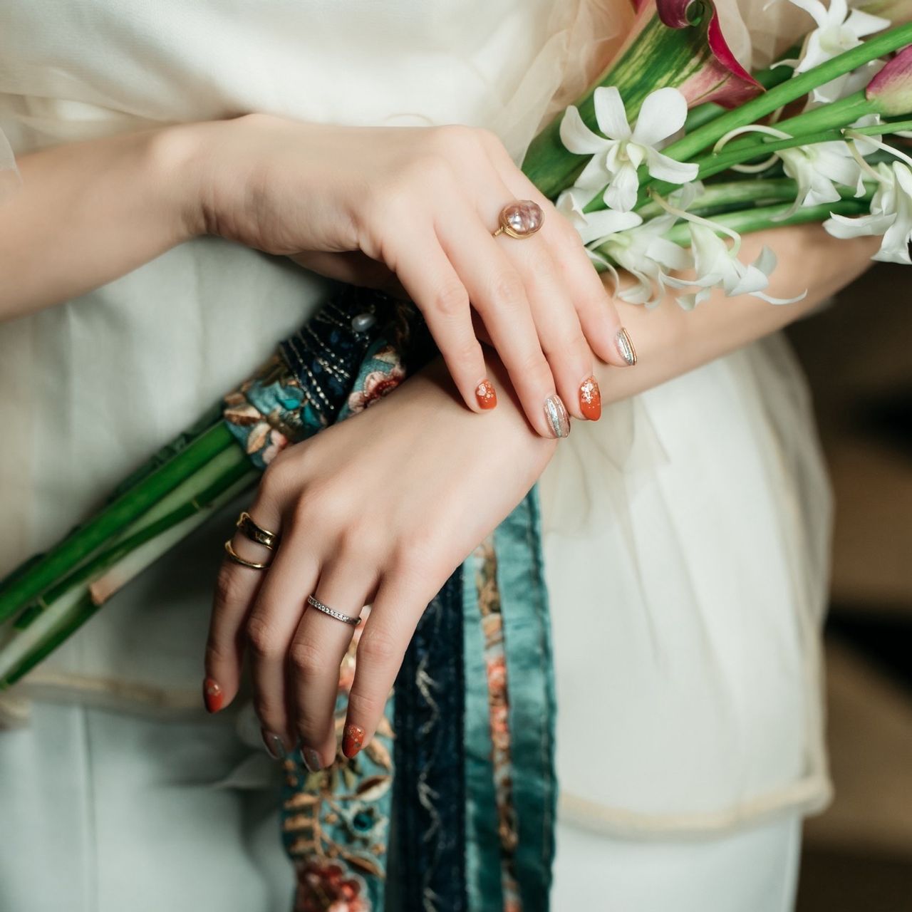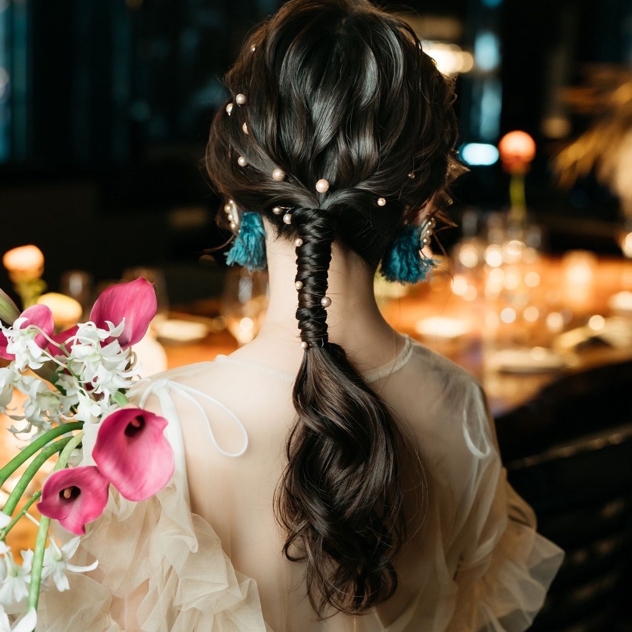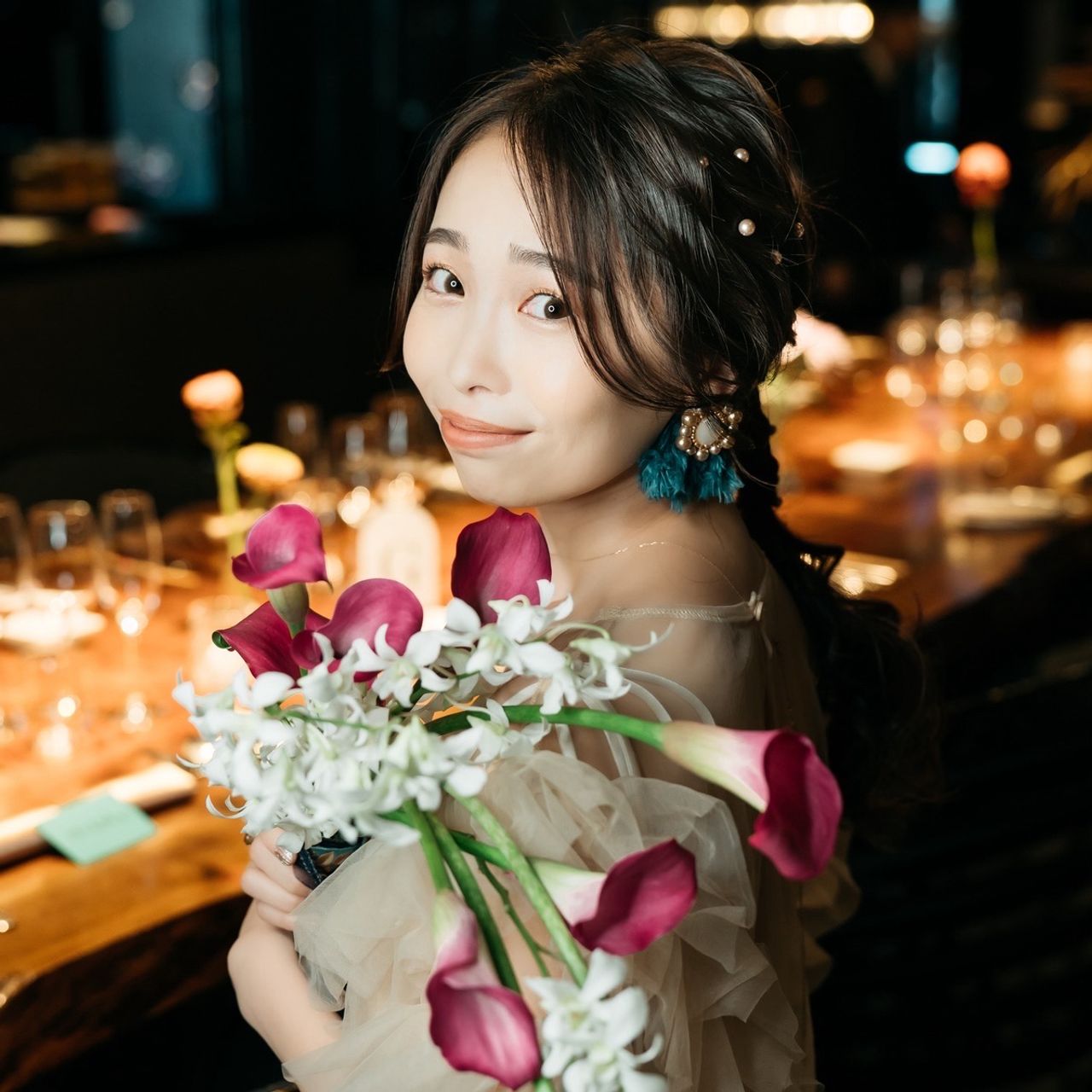 2着目ではブーケとセットのイヤーカフを着けています。