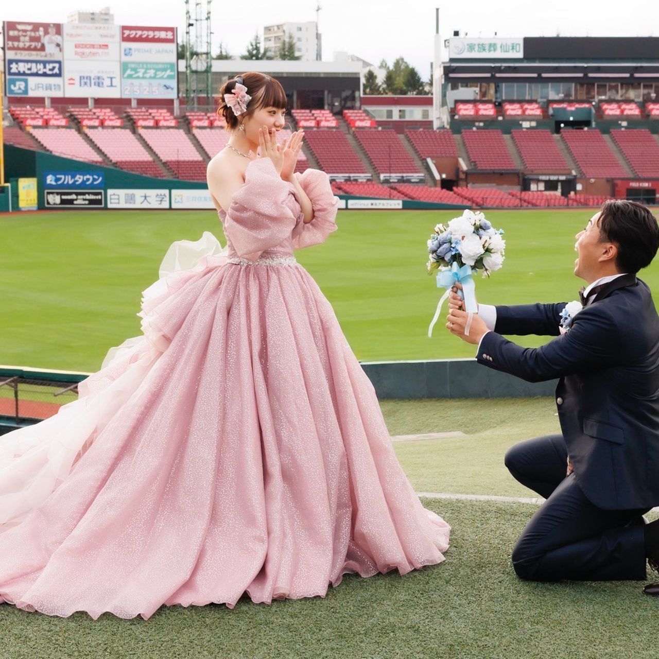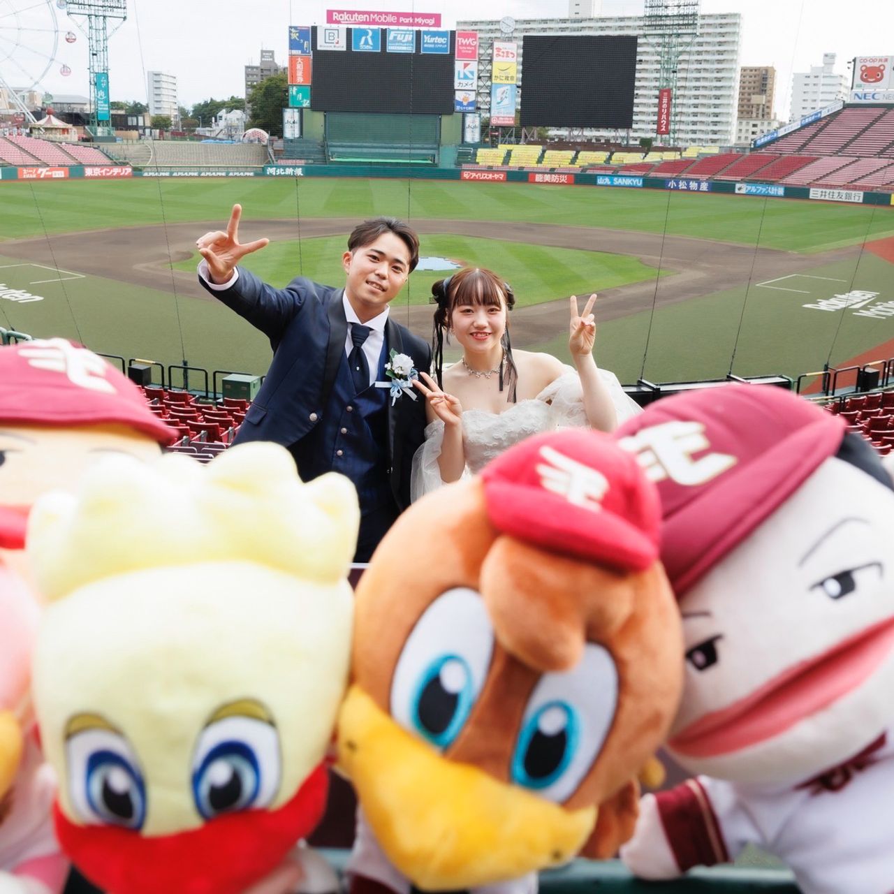 前撮りは「楽天モバイルパーク」で撮影をしたいという希望があり、なかなか予約が取れない状況の中でも、何度も問い合わせを重ねてくださいました。