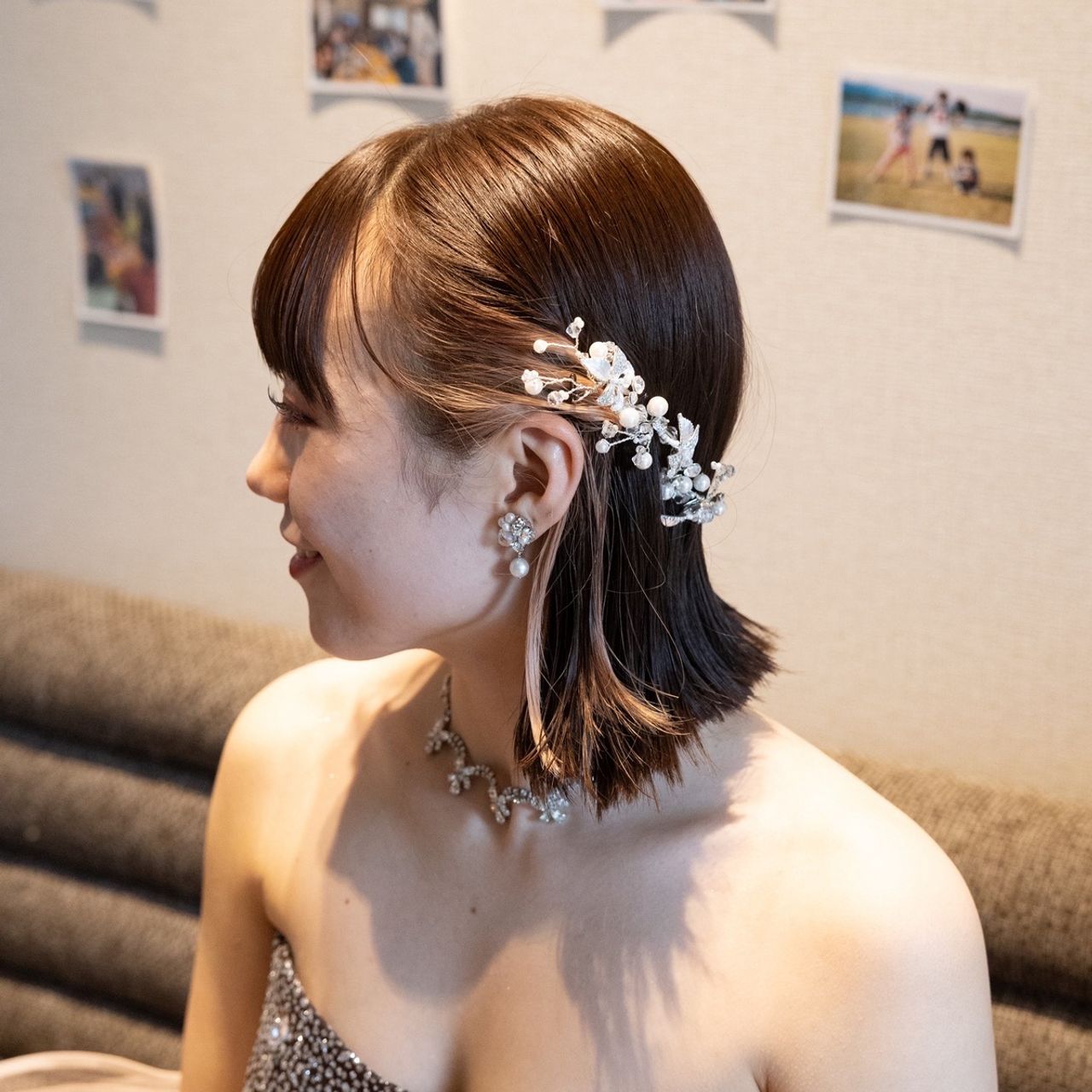 ドレスに合わせてシルバー系のアクセサリーを着用しました。