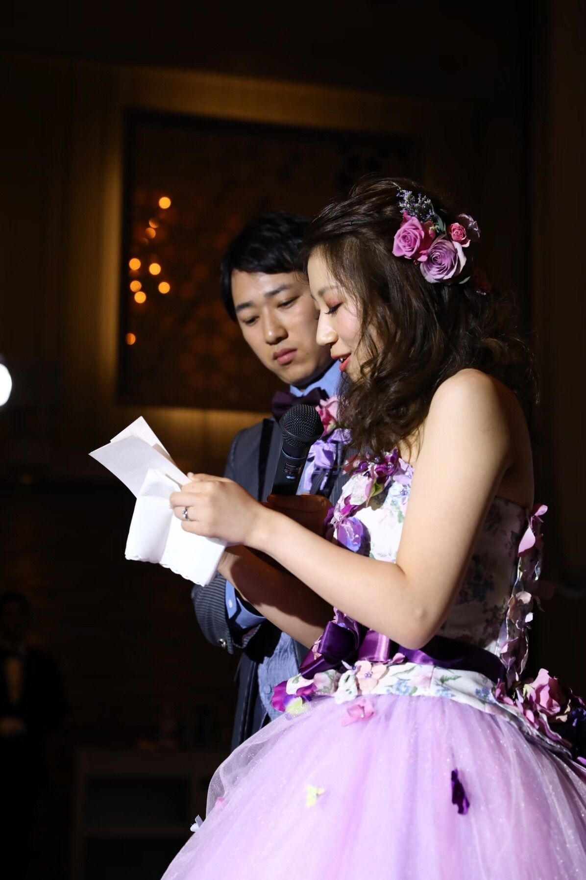 カラードレスはパープルのドレスなので、