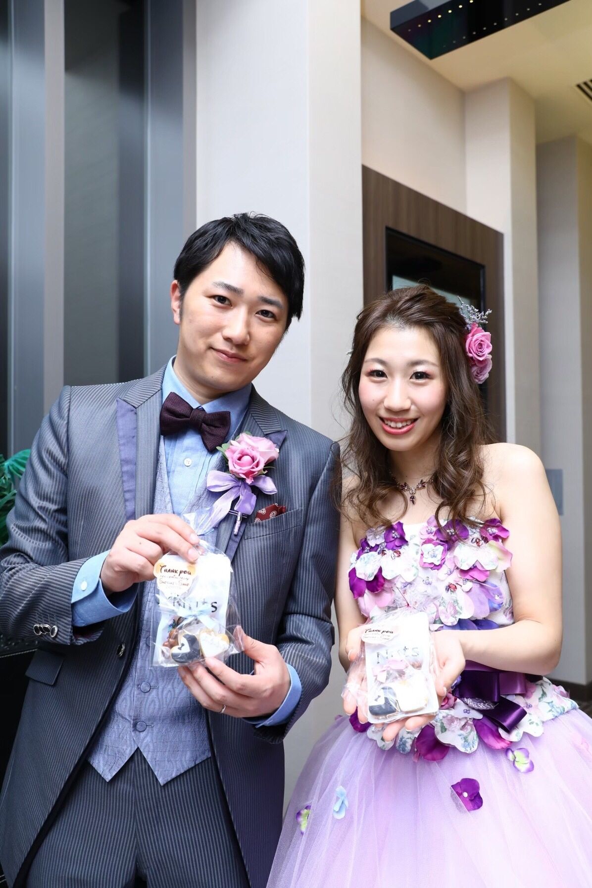 アイシングクッキー(ネット注文で、ドレスとタキシードのクッキーを作っていただきました)と、