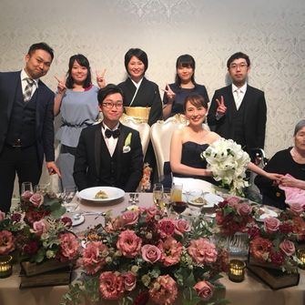 アットホームな雰囲気、感謝の思いを伝えることを大切にしました。テーマカラーはネイビー、ダスティピンクです。