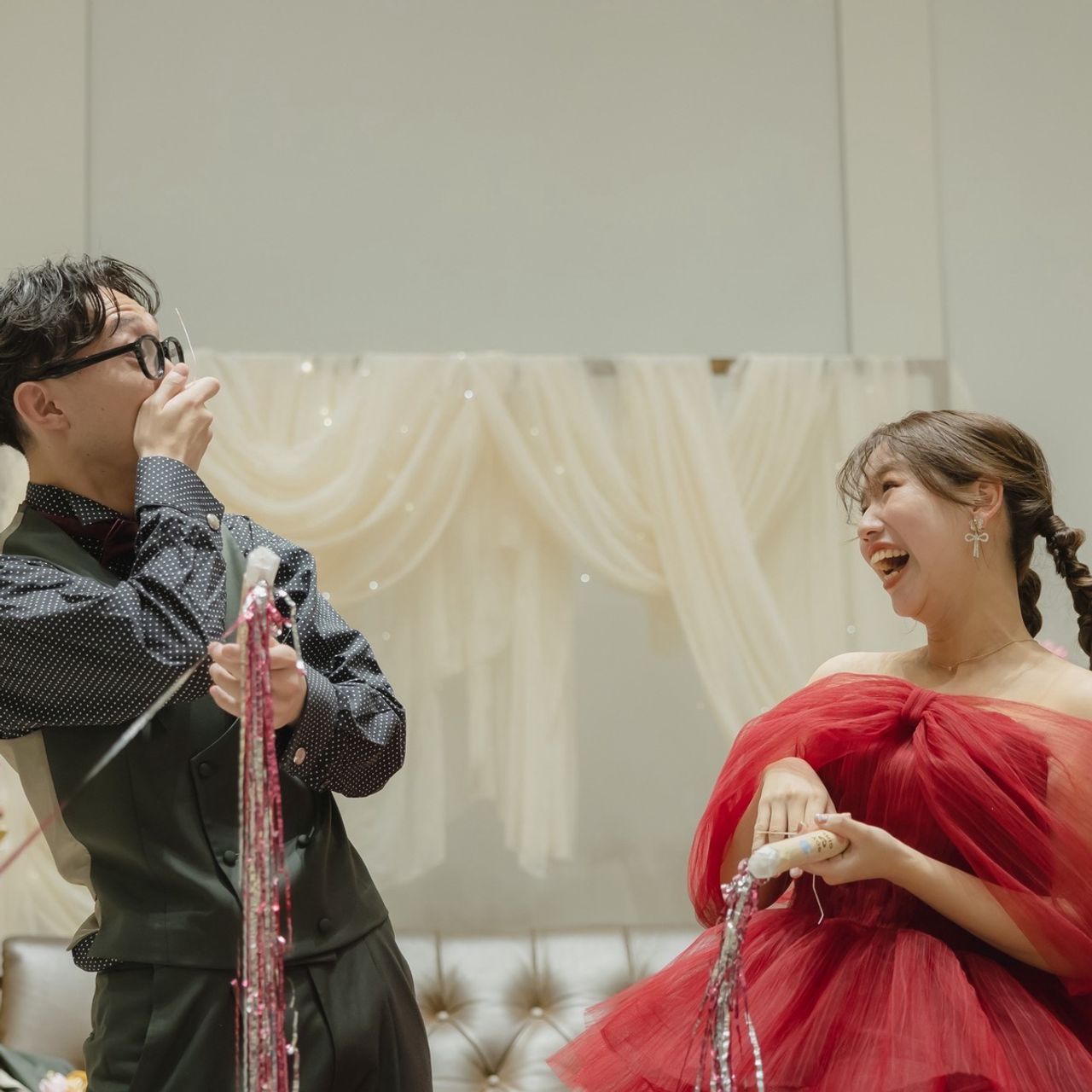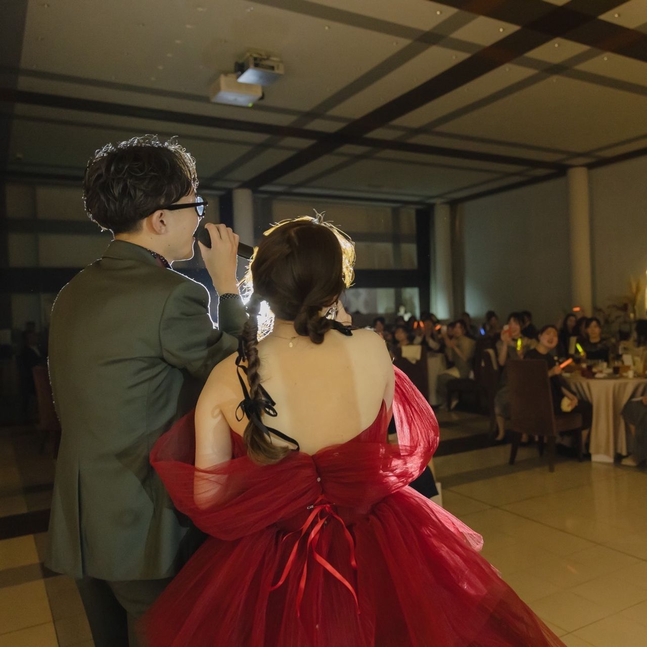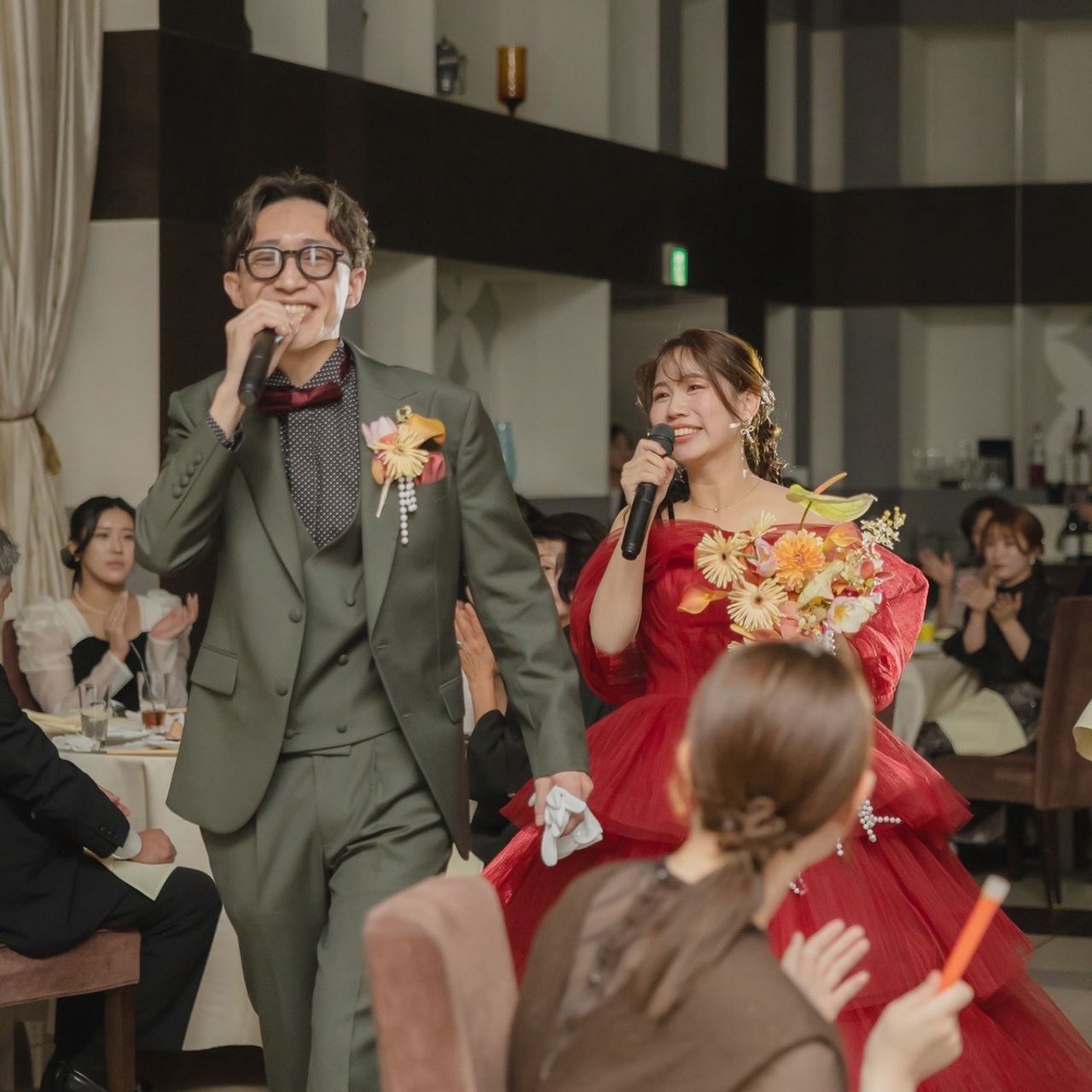 また、真っ赤なバージンロードだからこそ、どんな衣装でも映えます。ゲストに前に来てもらうシーンを作ったのですが、当日オシャレをしてきてくれたゲストの衣装もすごく映えました。