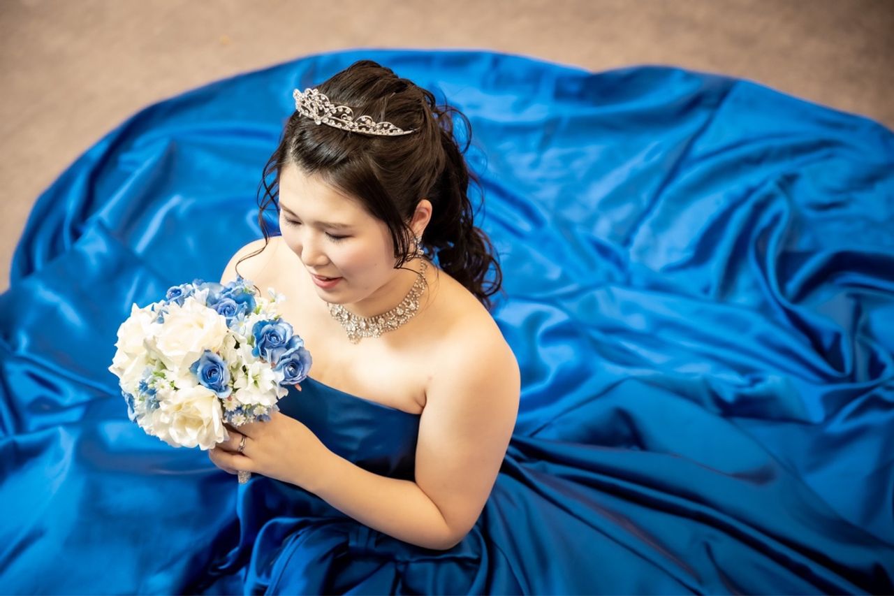 ロイヤルブルーのドレスにしたのですが、光沢感やボリュームのある形が可愛らしくて即決でした!
