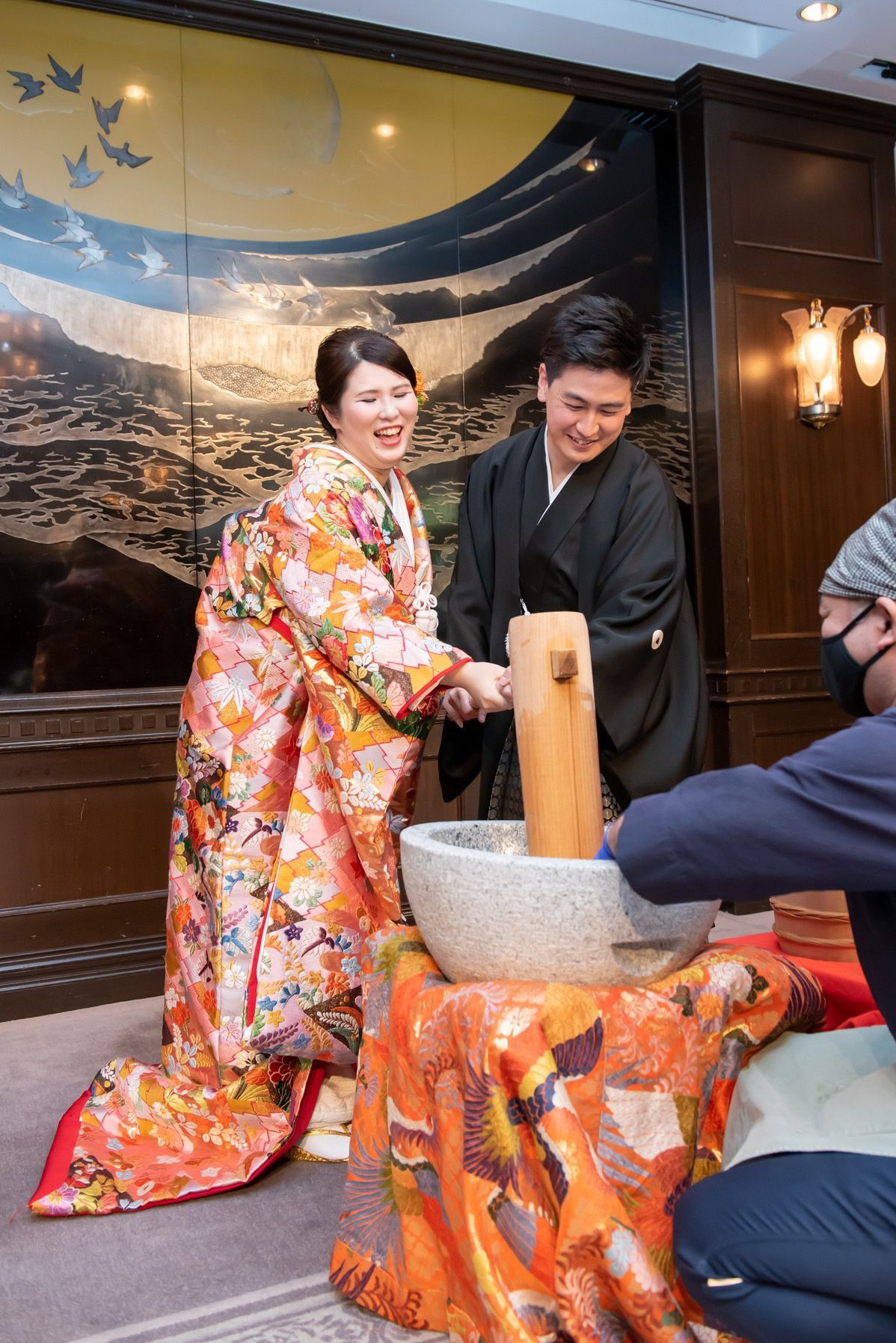 式には自分達の大切な親族・友人・同僚を呼ぶので、その人たちに楽しんでもらえるような式ができるように、ゲストの方に協力してもらうような演出をいれました!(たとえば、折り鶴シャワー、メッセージを書き込んでもらうジグソーパズル、お餅つき、サイリウムを使ったコンサート風再入場など)
