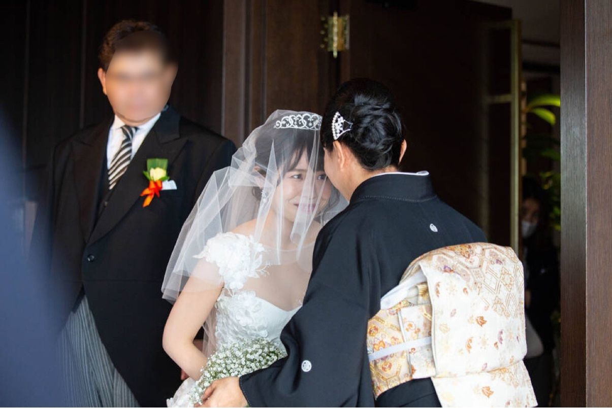 挙式時のベールダウンと、父とバージンロードを歩いたことです。ベールダウンをすること自体、前から「泣くだろうな」と覚悟はしていましたが、ベールダウン後、母からの「ずっと大好きだからね」と言う言葉が、グッと来てしまいました。