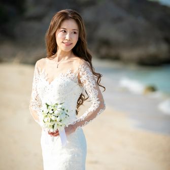 アラフォー婚なので、落ち着いたロマンティックな雰囲気と映画のワンシーンのようなドラマティカルなコンセプトにしました。今の状況も鑑み、夫婦2人だけのお式で、撮影メインの挙式にしました。