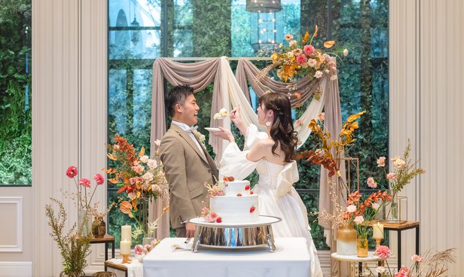 階段の上からゲストがサイリウムを振っている景色が見たかったので階段がある式場がよく、ガーデンが付いている事は絶対条件で探していました!