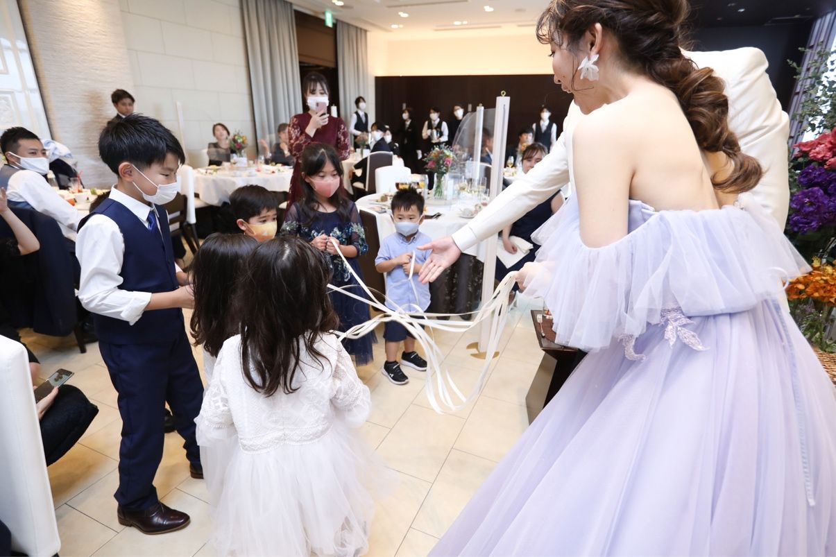 とにかくゲストに楽しんで貰えるよう、誰もが当たる可能性のあるクイズをしたり、料理のグレードは高く設定しました。子供がたくさんいたので、子供達が飽きないようにインスタントカメラをDIYしてちびっ子カメラマンをお願いしたり、おもちゃを用意したり、子どもプルズのイベントを入れたりしました。