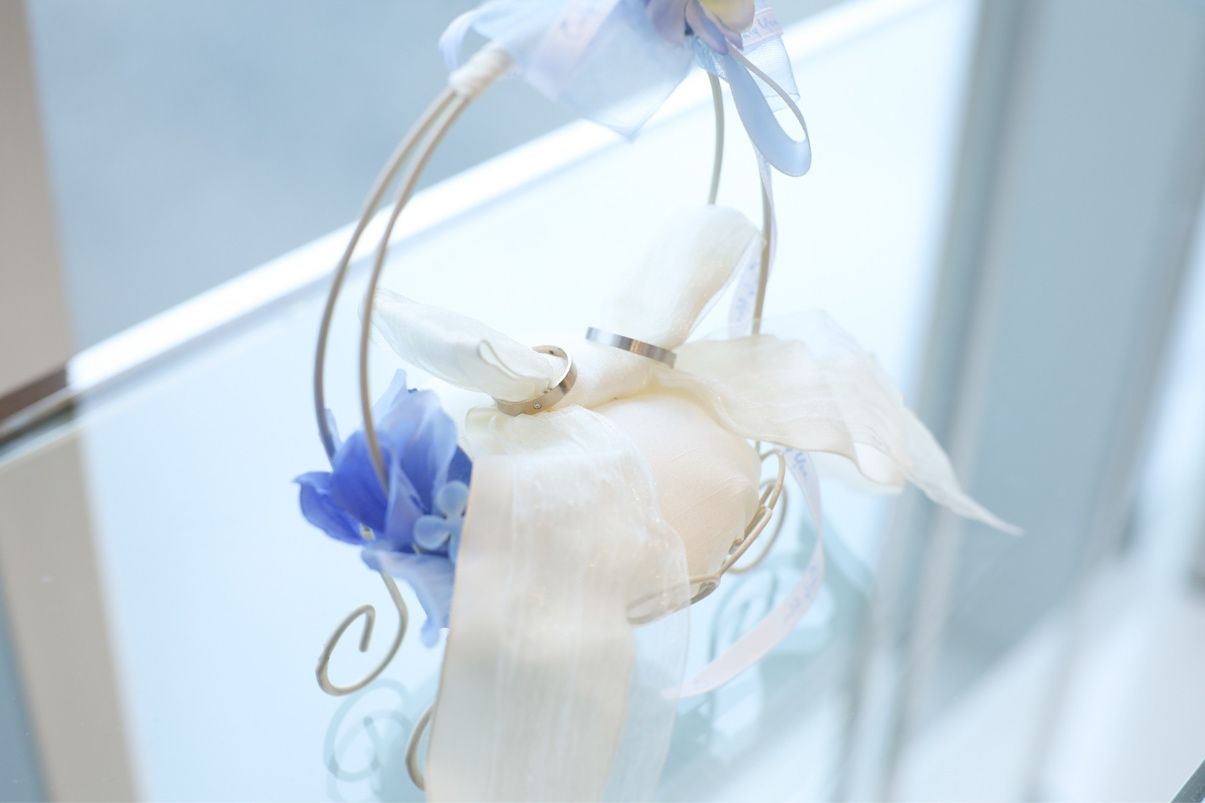 デザインはスクエアタイプのヘアーライン加工(マットのような感じ)で、新郎はプラチナ、新婦は18k(シャンパンゴールド)にしました。