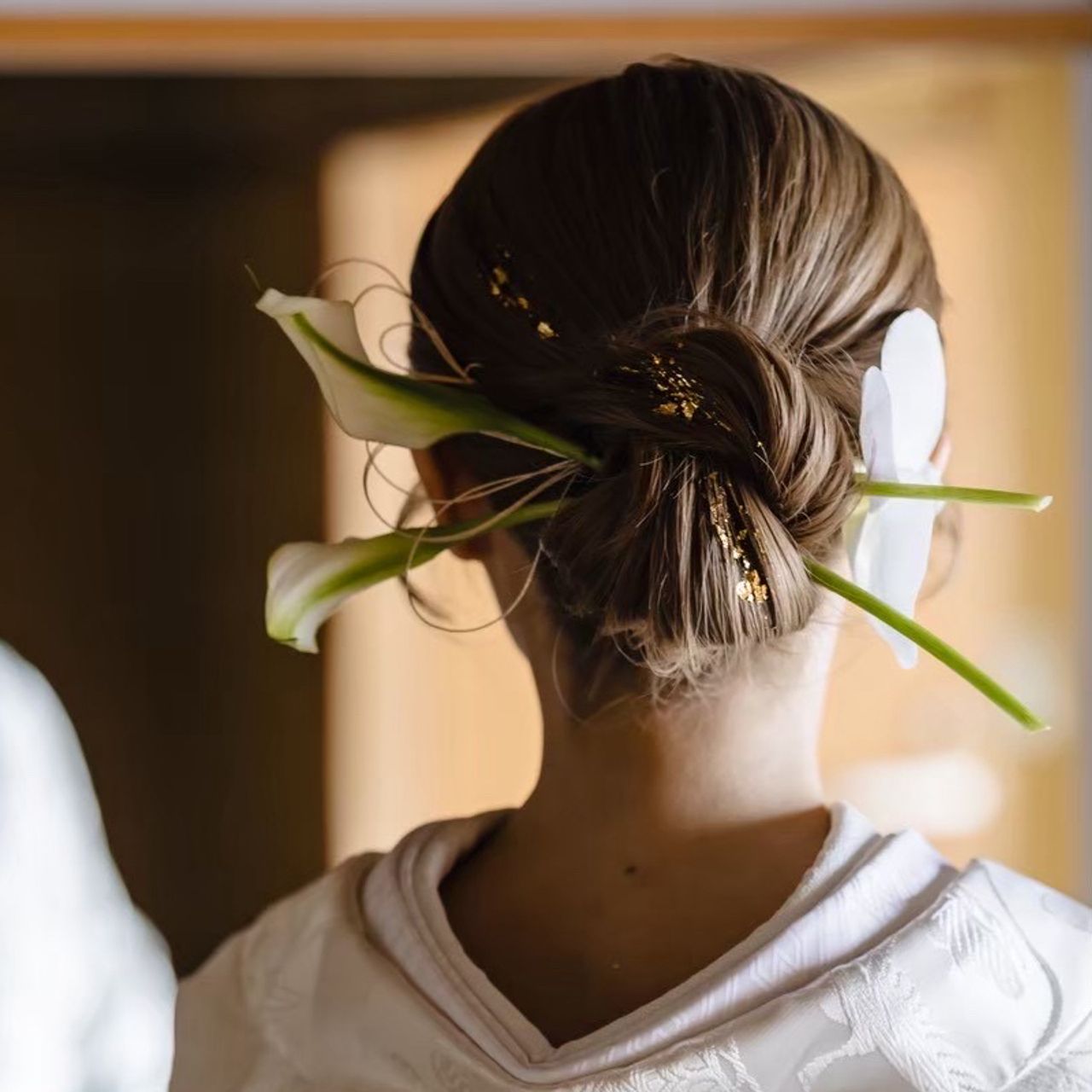白無垢を着用する際、生花を着用したかったため、なるべくボリュームを出さずシンプルにまとめていただきました。