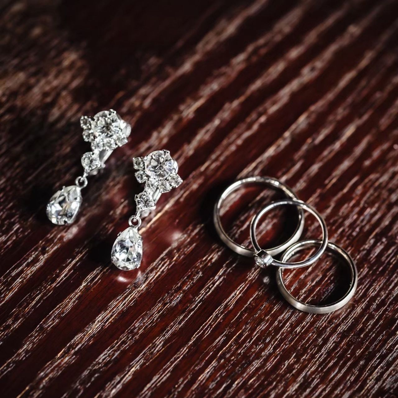 ドレス着用時、親しみやすい空間づくりのために派手すぎないイヤリングと、あえて首元には何も付けずシンプルかつナチュラルにまとめました。