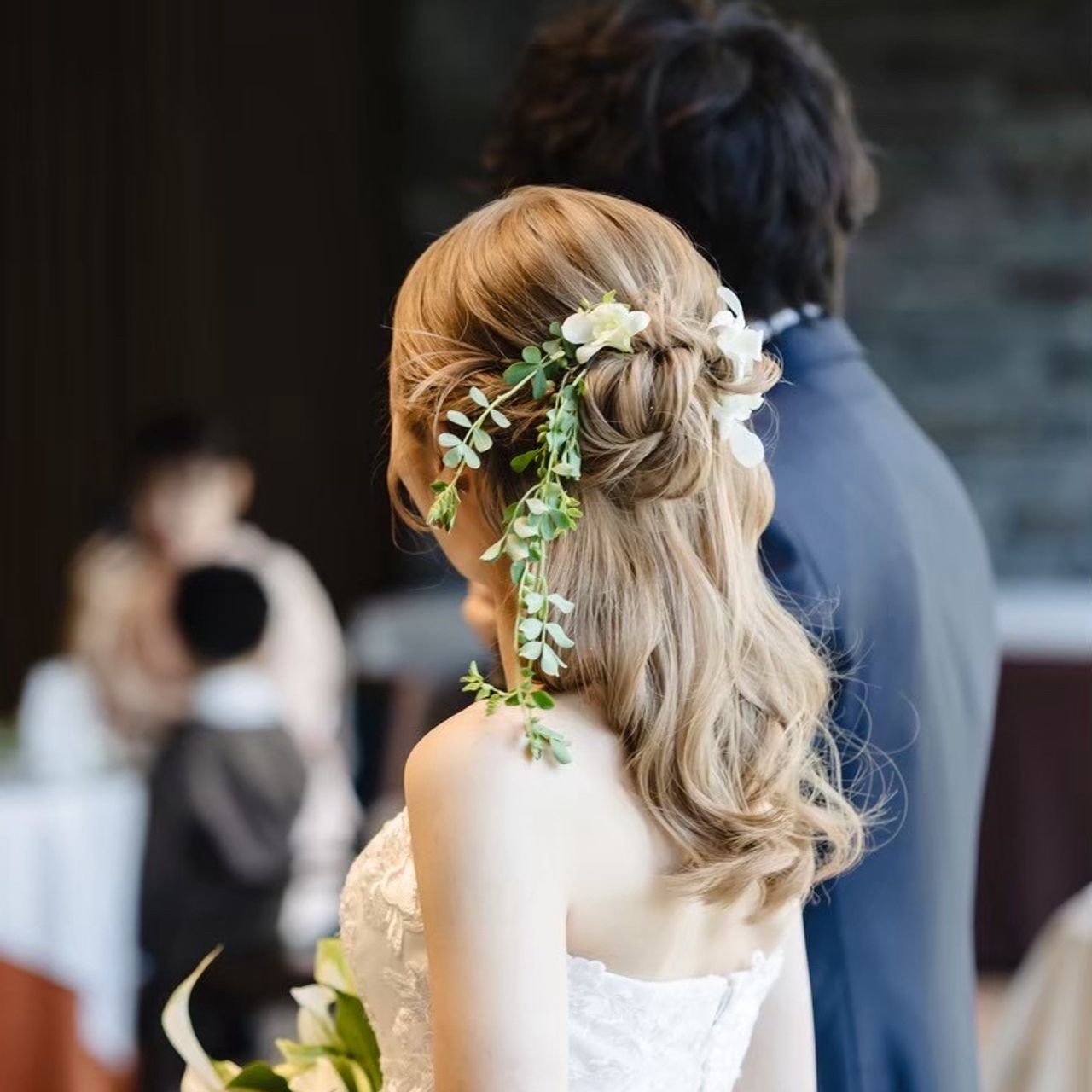 披露宴は、柔らかな雰囲気にしたかったのでハーフアップにしました。