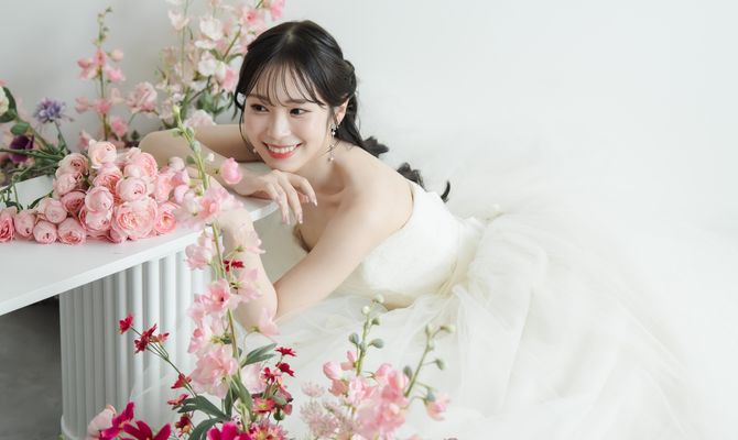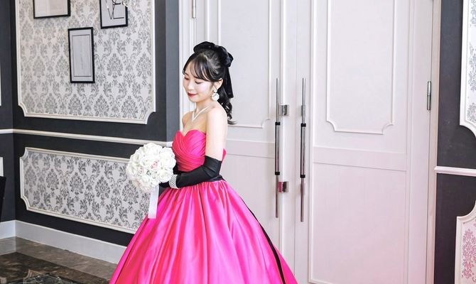 モノトーンをメインにシックな雰囲気にしつつ、リボンや薔薇で可愛らしさもプラスしました。