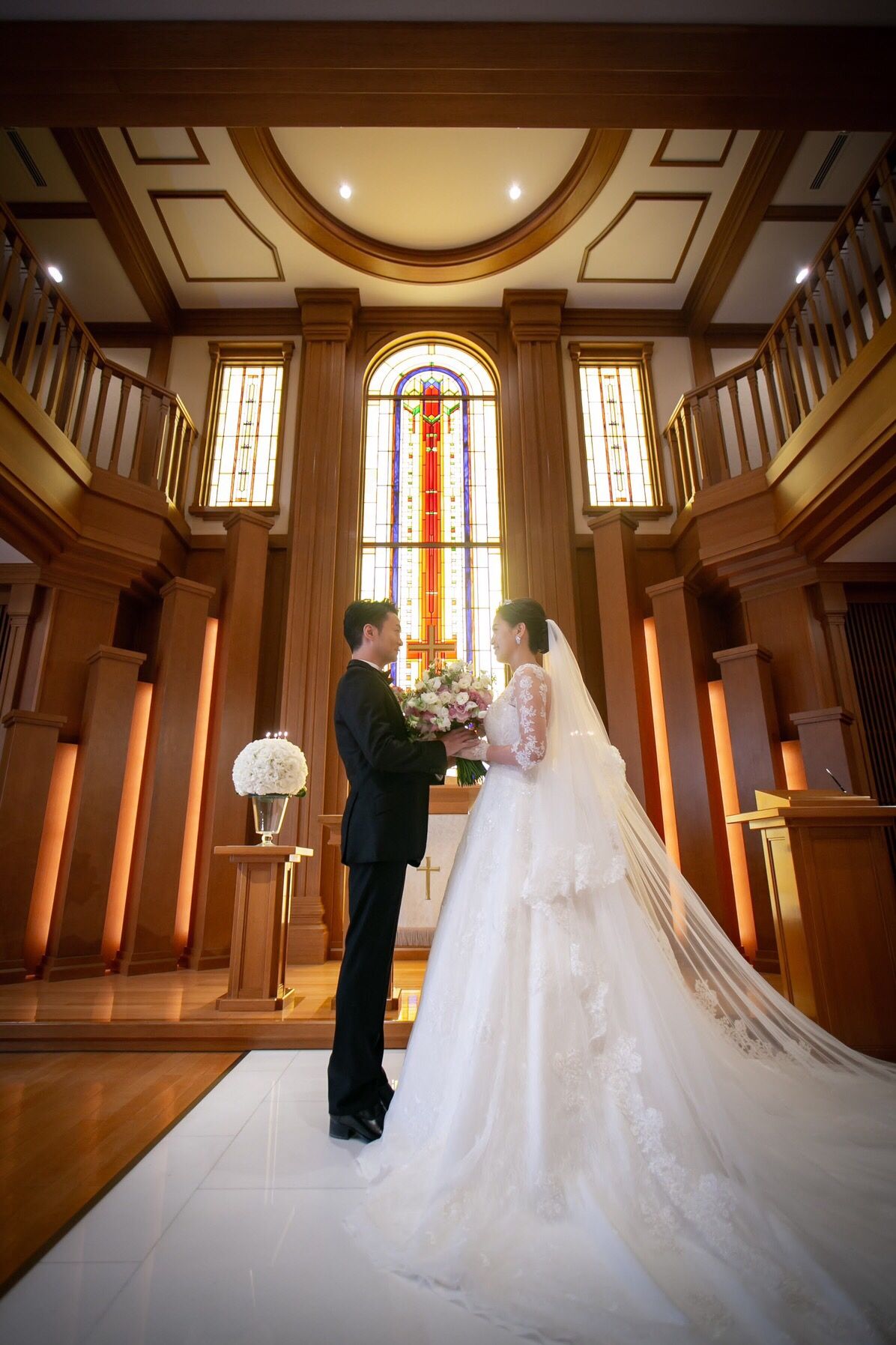 ステンドグラスが美しいクラシカルなチャペル。