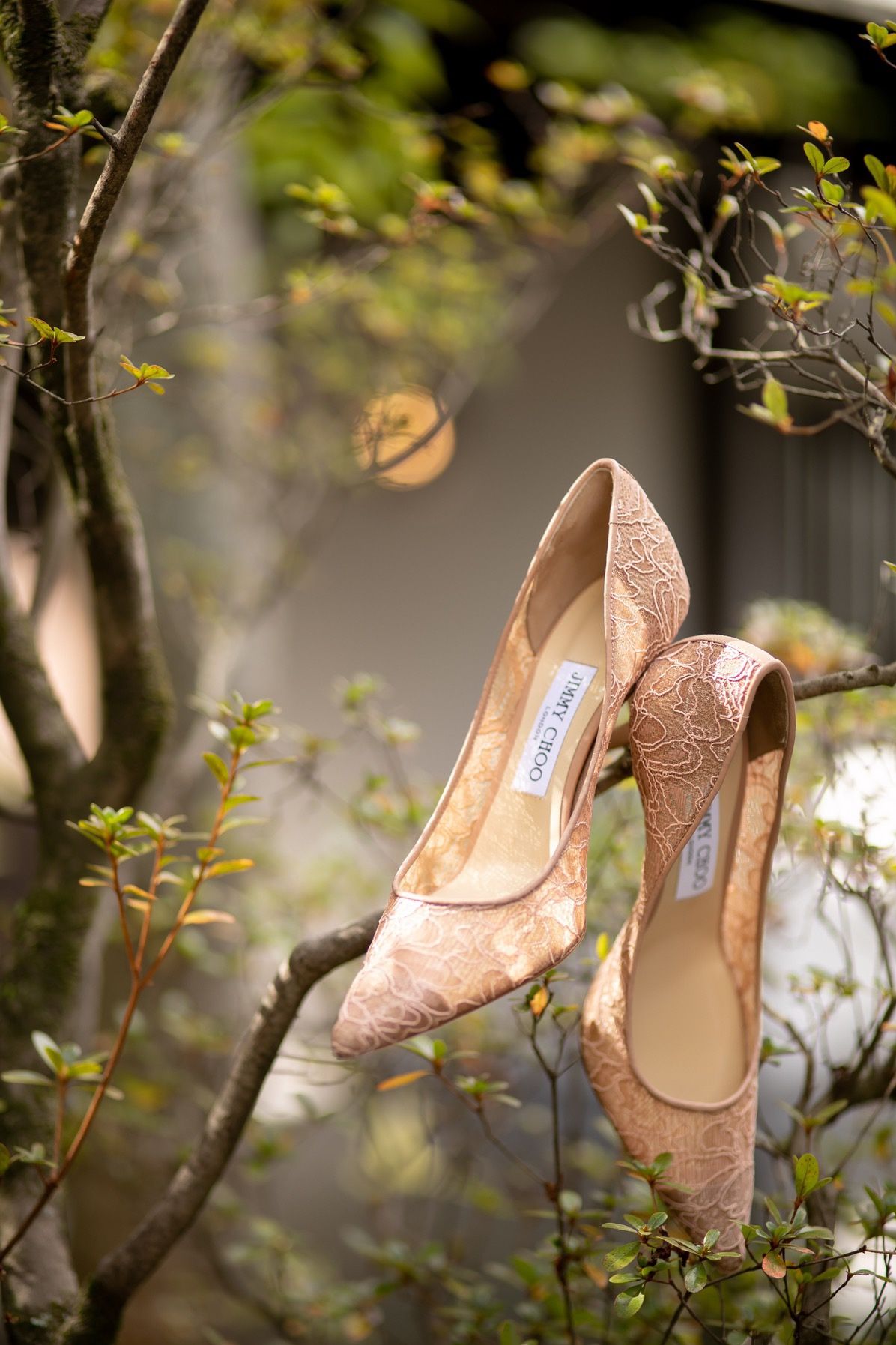 私と彼の身長差とドレスの長さを考えて、ドレス担当の方にヒールの高さを事前に確認しました。定番のキラキラにも憧れましたが、ベージュのレース素材で結婚式後も特別な日に履けるように選びました。