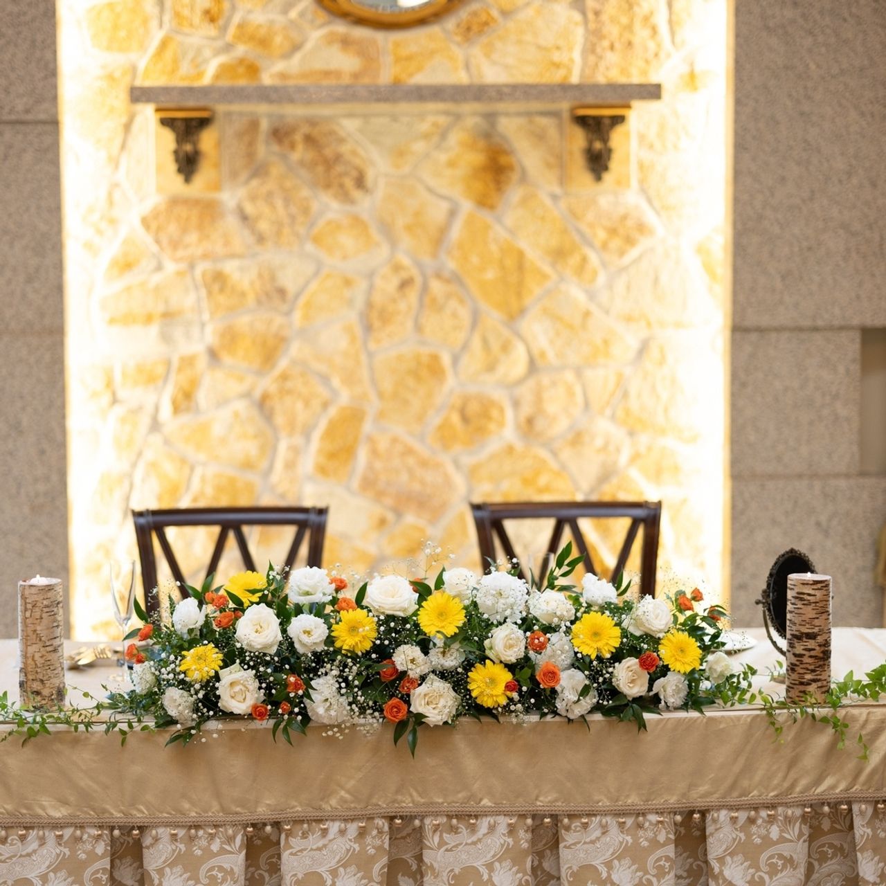 かすみそうが好きなので使ってくださいとお願いし、左右にろうそくなどを置いて寂しくならないようにしていただきました。