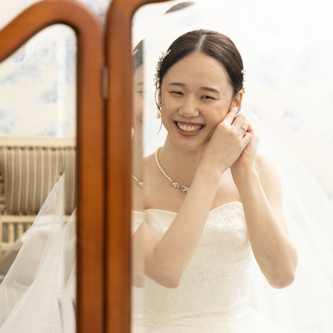 ドレスショップ FINOさんでネックレスとイヤリングをお借りしました。