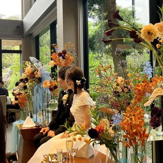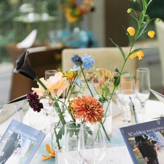 おもてなしにこだわった式でした。全体としては大人っぽいくすみブルーやくすみパープルを基調としつつ、カラフルなお花を取り入れて春の華やかさを演出しました。