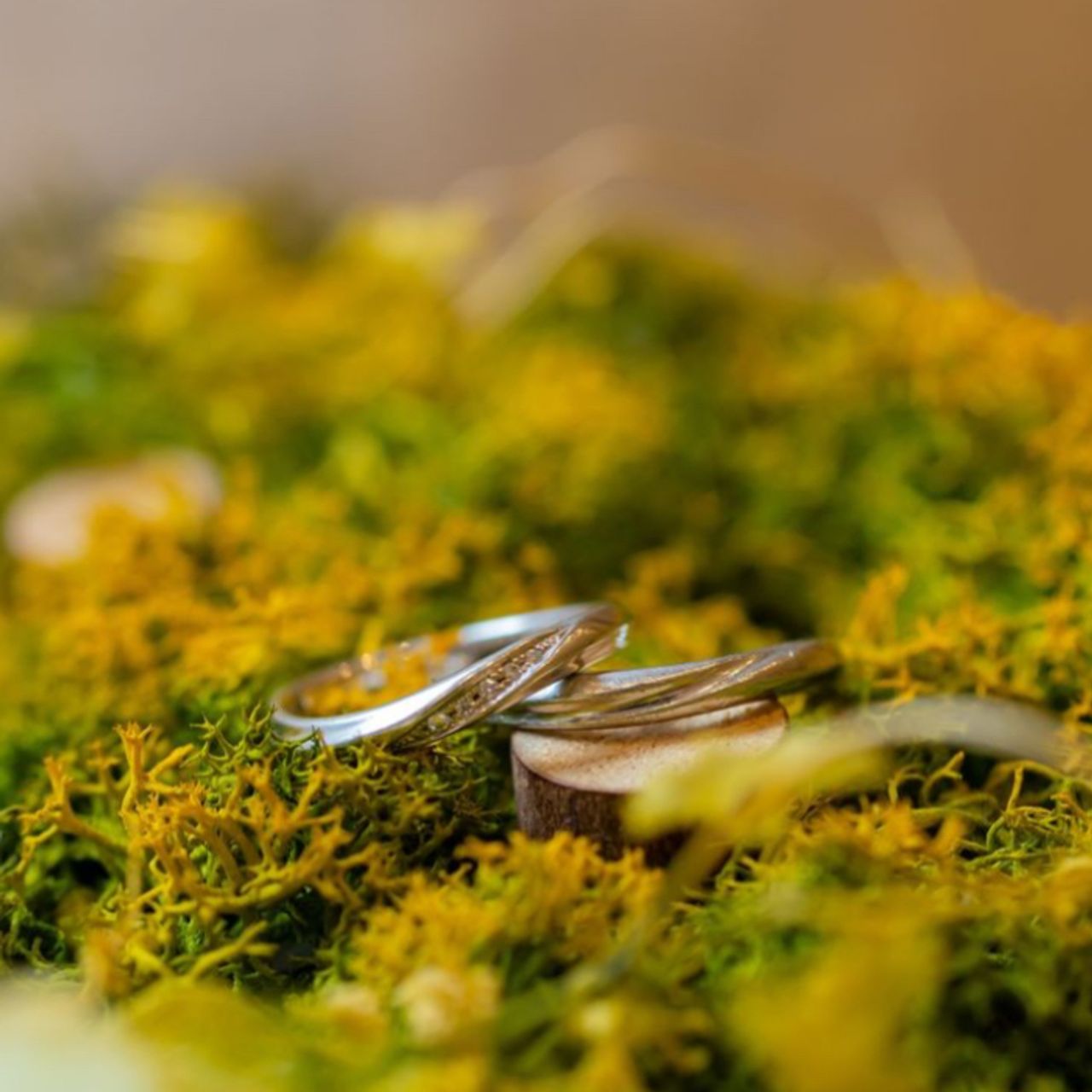 ウェーブの形にそってダイヤが入っています。指輪の内側には、お互いの誕生石を入れました!