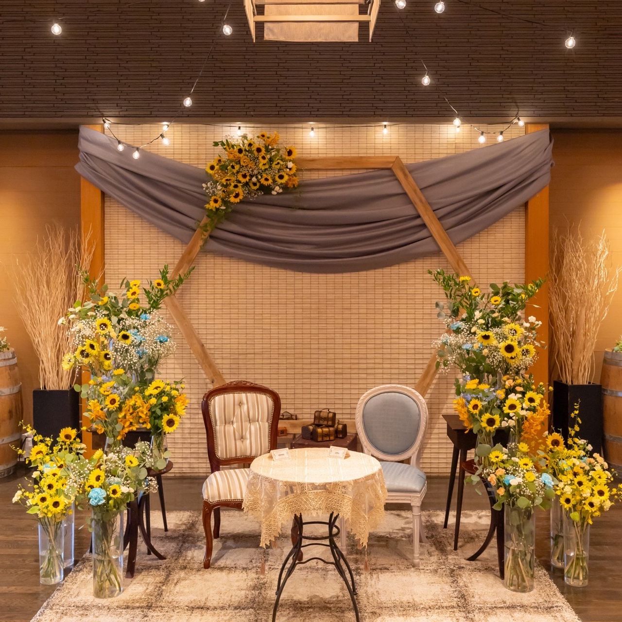 当日の会場装花は、イメージ通りで、想像以上の仕上がりでした。とても気に入り、当日の装花を見て感動しました!担当フローリストはパルテールさんです。