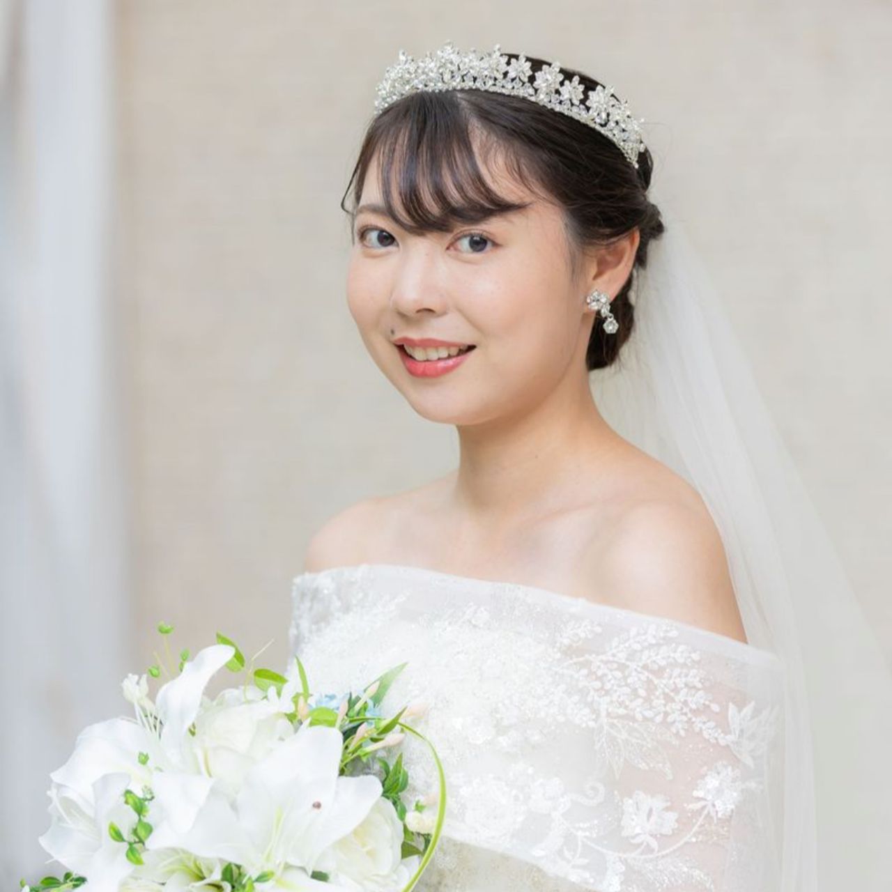 ウェディングドレスの時は、横に広がるデザインのティアラを着用しています。
