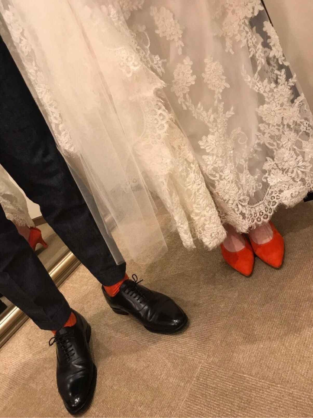 新郎には、同じ色味の靴下を履いてもらい、足元をリンクさせました。