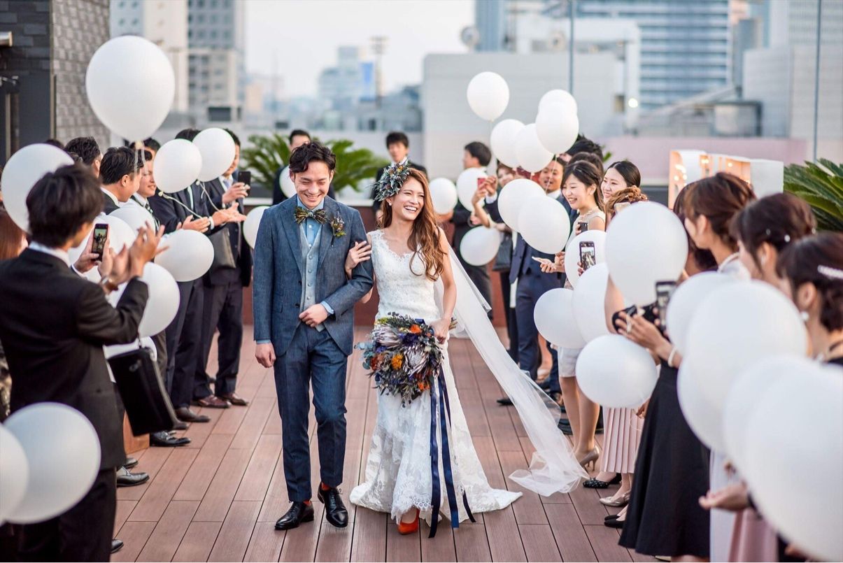 こだわりは、屋上での入場、バルーンリリースです。みなとみらいを一望できる景色を、ゲストにもゆっくり楽しんでもらいたかったこと。