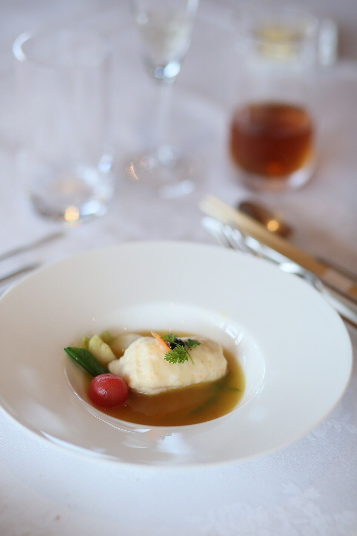 親族のみだったので、好みを考え、脂っぽい食材を避け、お魚料理は直前に出汁をかけるスープ仕立て、お肉料理はポン酢ソースなど和食をベースに選びました。