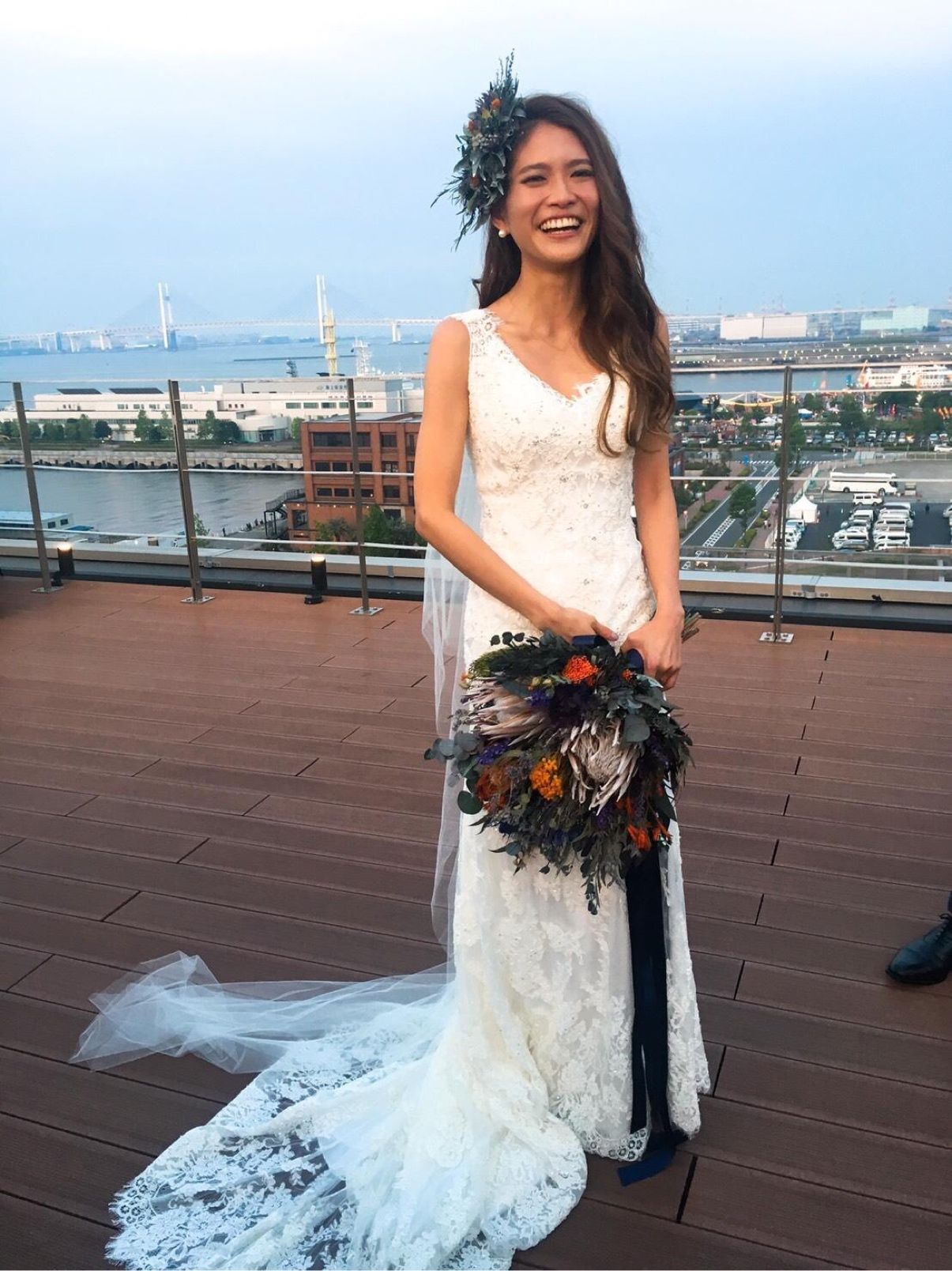 チャペルでの挙式は家族だけだったので、屋上でセレモニーを行いたかったこと。