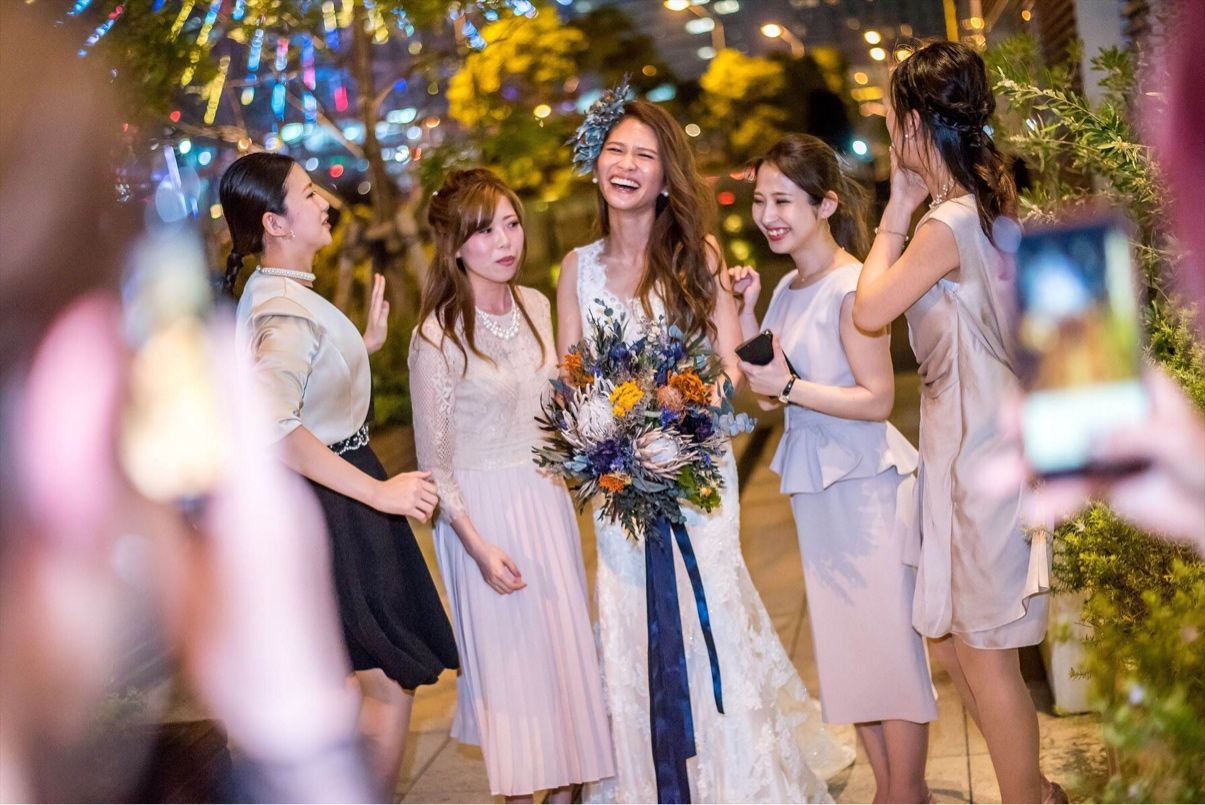 ゲストと近い距離で楽しめるよう席は設けず、カジュアルなパーティにしました。時間帯も夕方から夜にかけてだったので キャンドルをたくさん飾ったりして、装飾はナイトウェディングを意識しました。