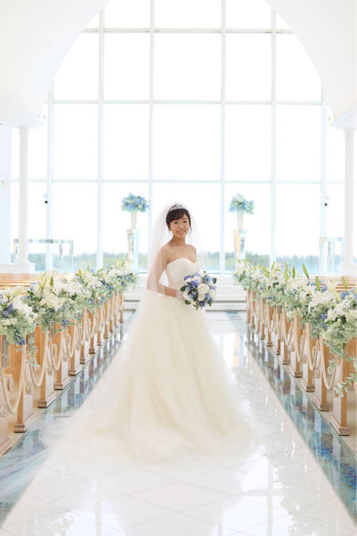 ・天空のチャペルは、バージンロードが長いので、一歩一歩噛み締めて歩くことができます。