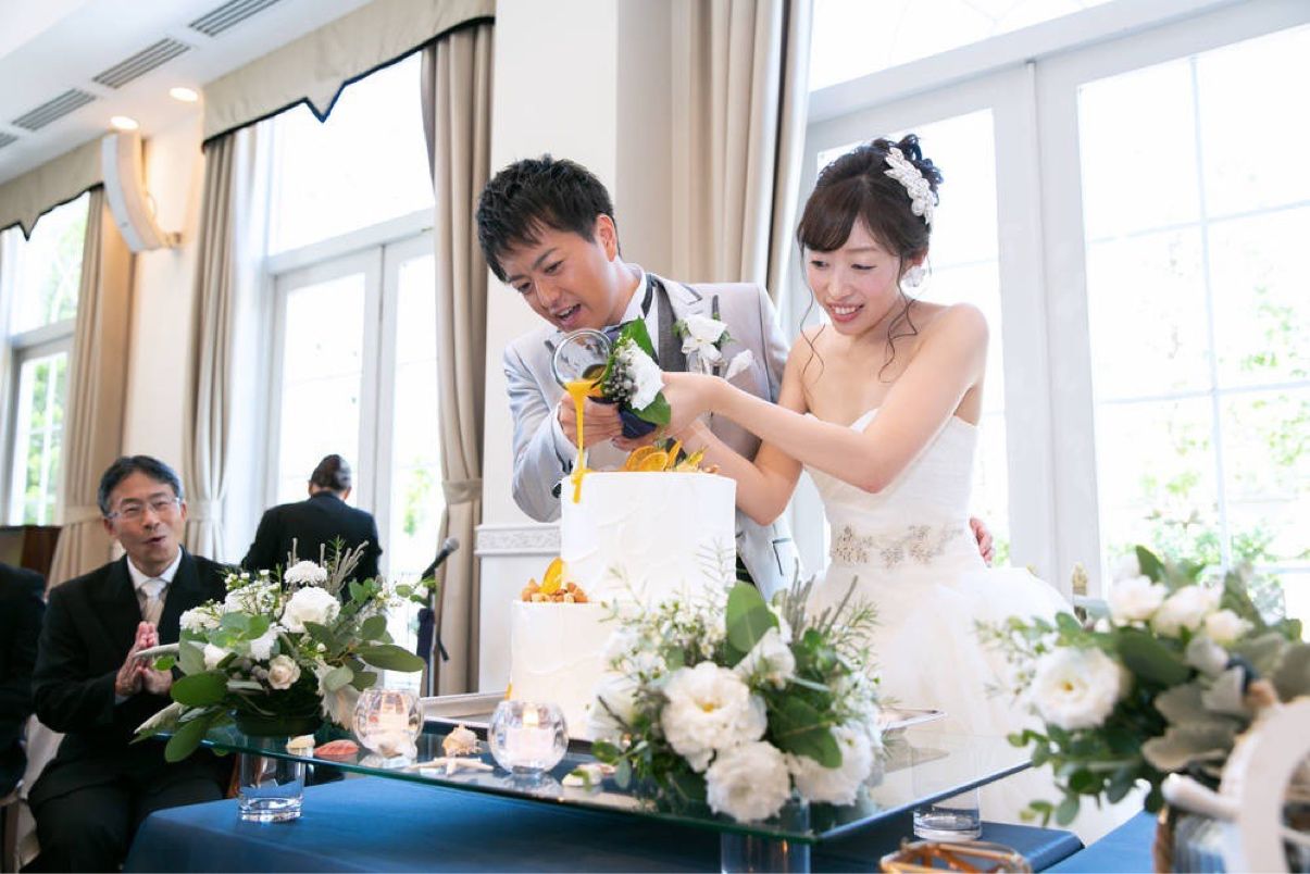 動きがあったほうがいいと思い、シロップをかけて完成させるタイプの、ウェディングケーキにしました。ゲストの皆さんからも、初めて見た!と好評でした。