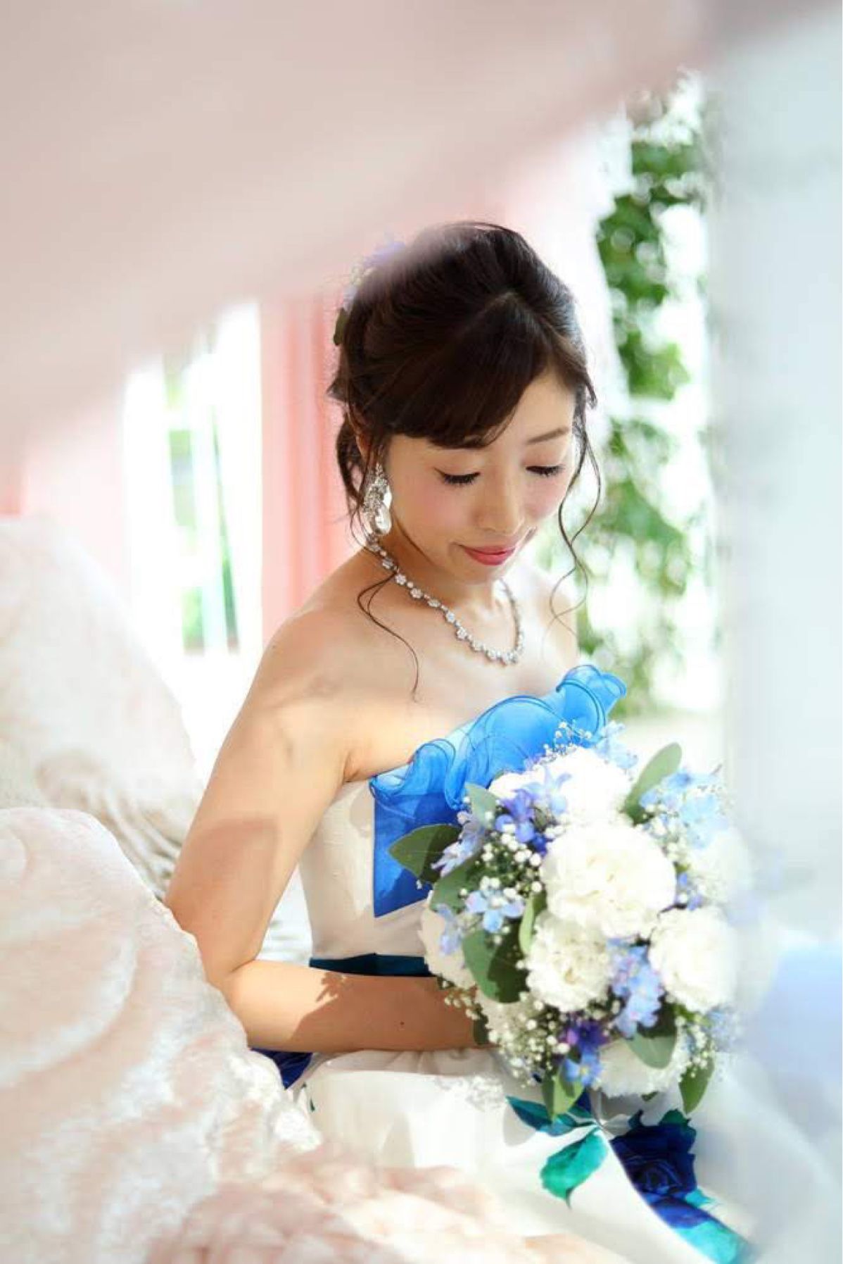・お色直し : ブーケと合わせた、青系のお花のヘッドパーツ。