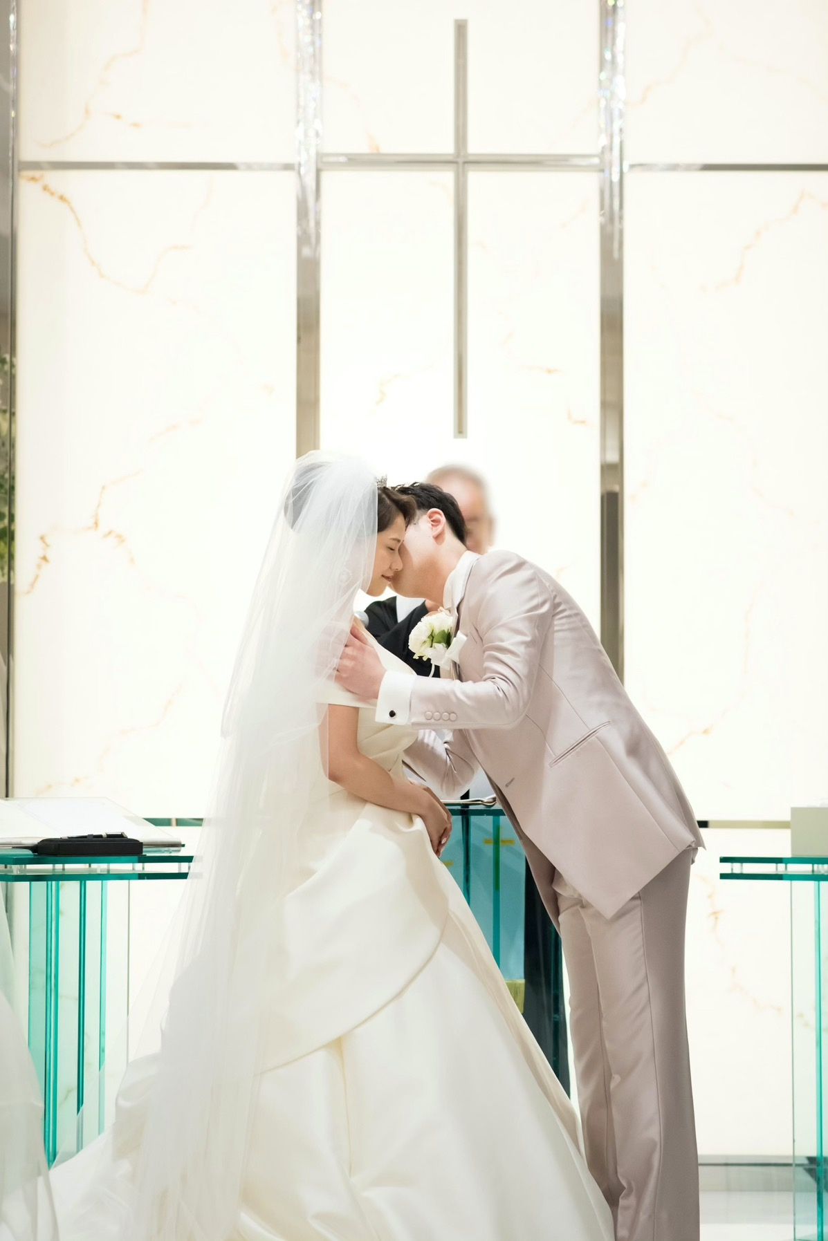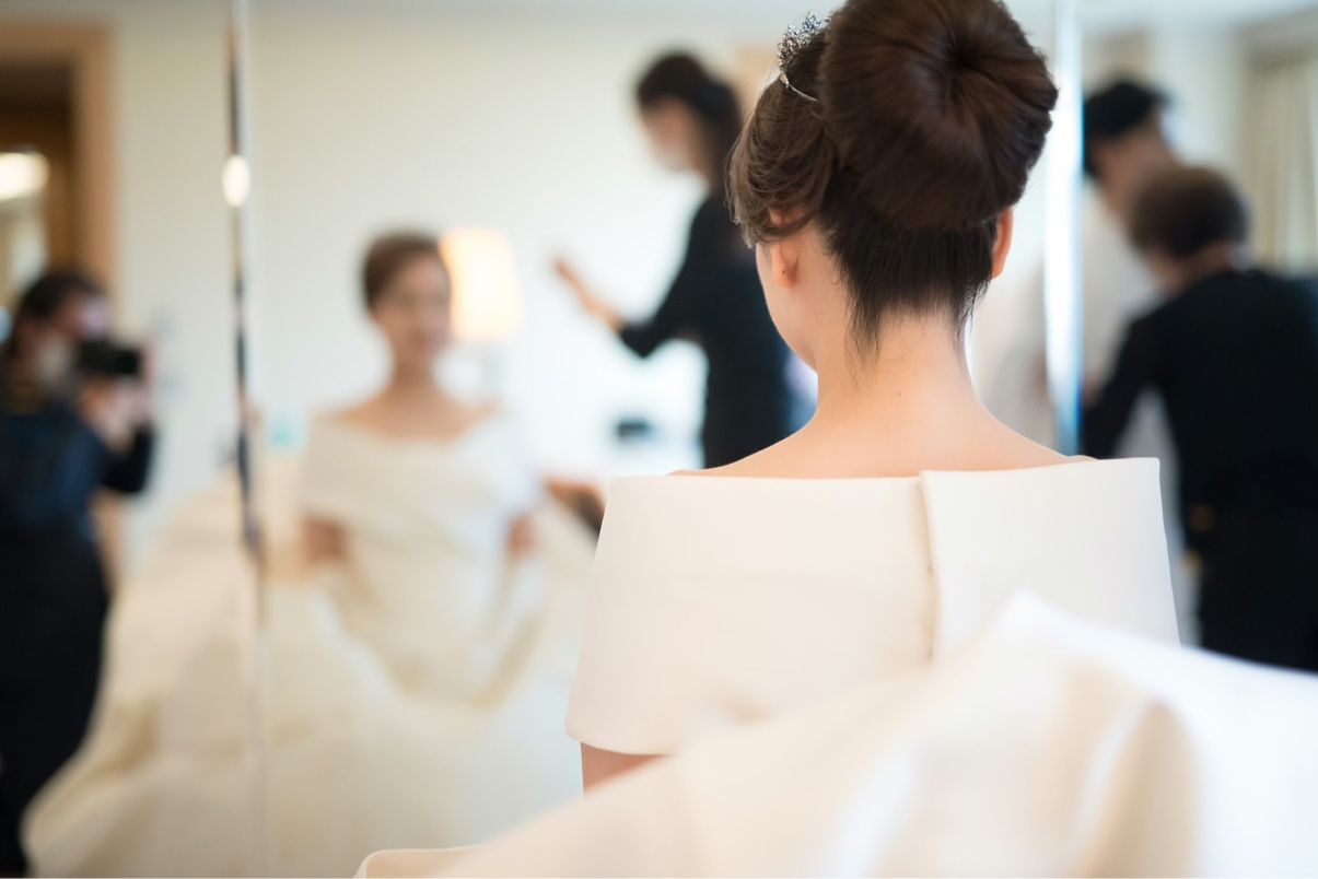 私の場合、1着目にティアラをつけていたのとピアスも大振りということでネックレス等のアクセサリーは外し、指輪は結婚指輪のみつけました。2着目は和装なのでアクセサリー類は指輪以外は外しました。