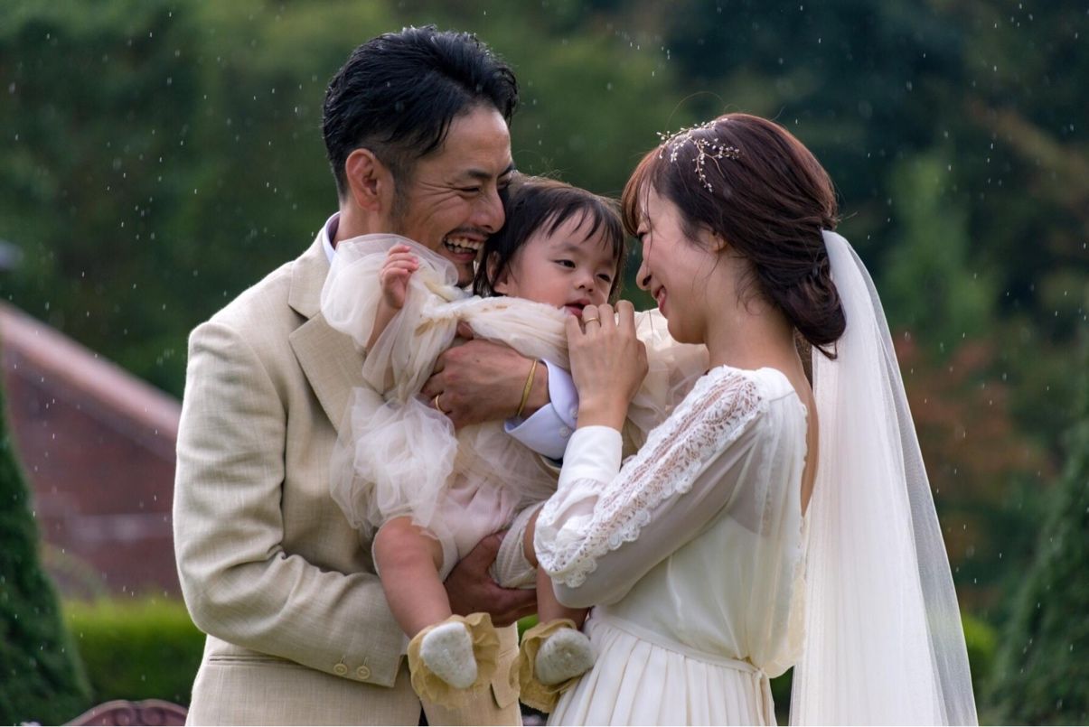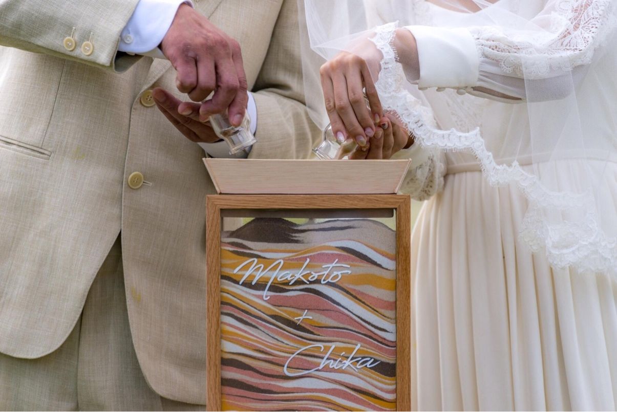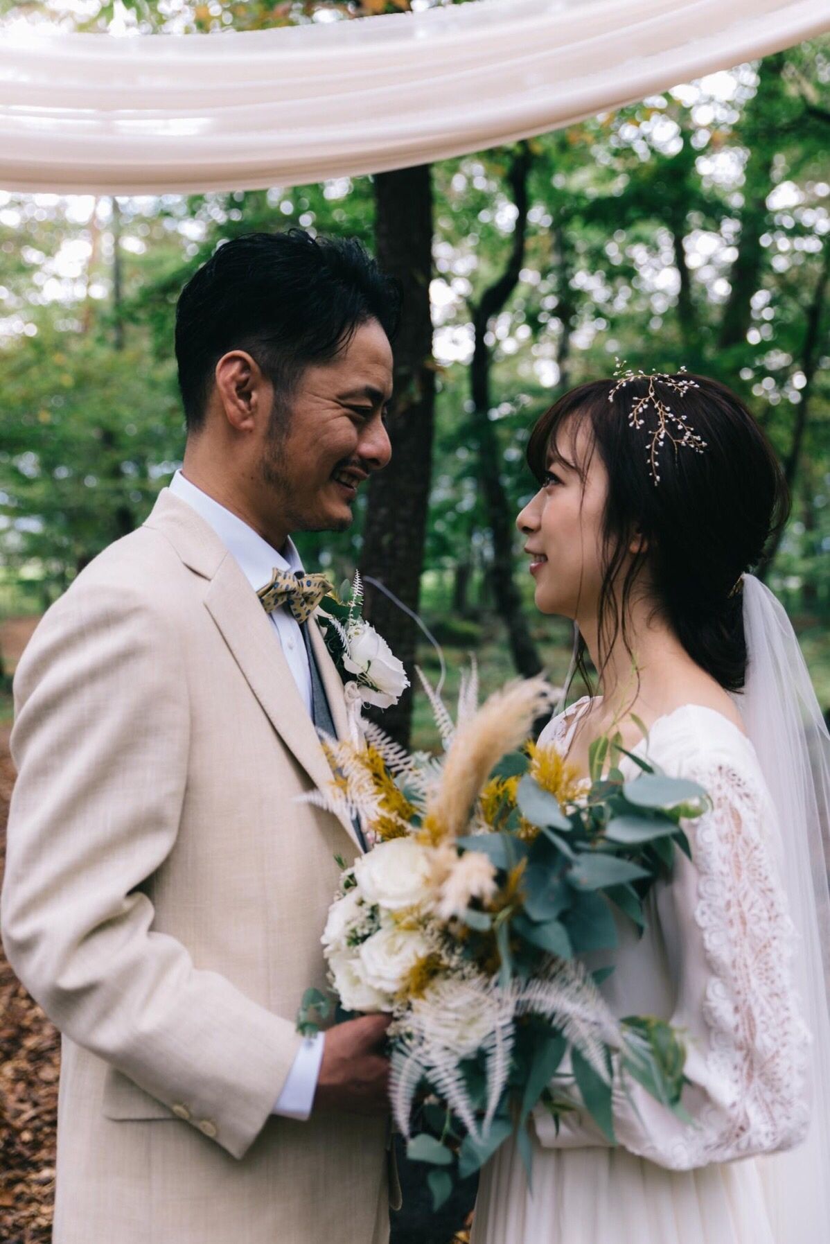 式場を使わなかったのでチャペルはありませんでしたが、会場はあえて作り込まず自然の中、空の下で挙式を行いました。当日は雨予報が挙式の時間だけ晴れ間がさしたり虹がかかったり、ガーデンでしかない自然のサプライズに出逢えました。
