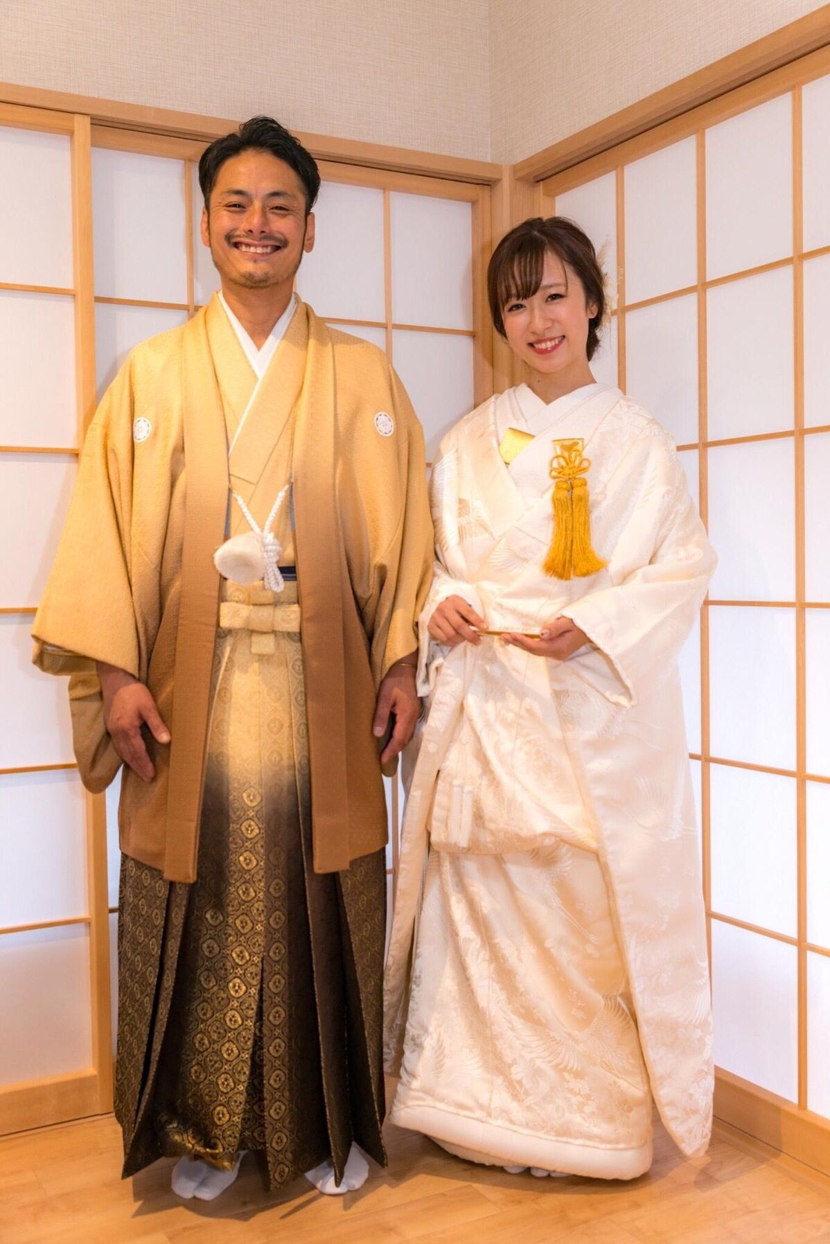 紋服は上下ゴールドで珍しい色でしたがありきたりなネイビーや黒にはしたくなかったのでこちらに即決。白無垢の小物も合わせてゴールドにしました。