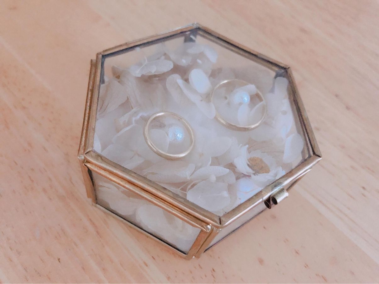 ウェディングドレスはヘッドパーツが大振りだったので無し。カラードレスではオーダーでピアスを作ってもらいました。