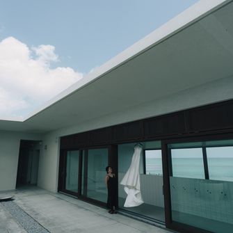"沖縄らしく、リゾート感たっぷりに"をテーマに、教会から一面の海が見渡すことができ、敷地内にある南国風のお庭や貸切のビーチで撮影できる美らの教会(ザ・ギノザリゾート)を選びました!