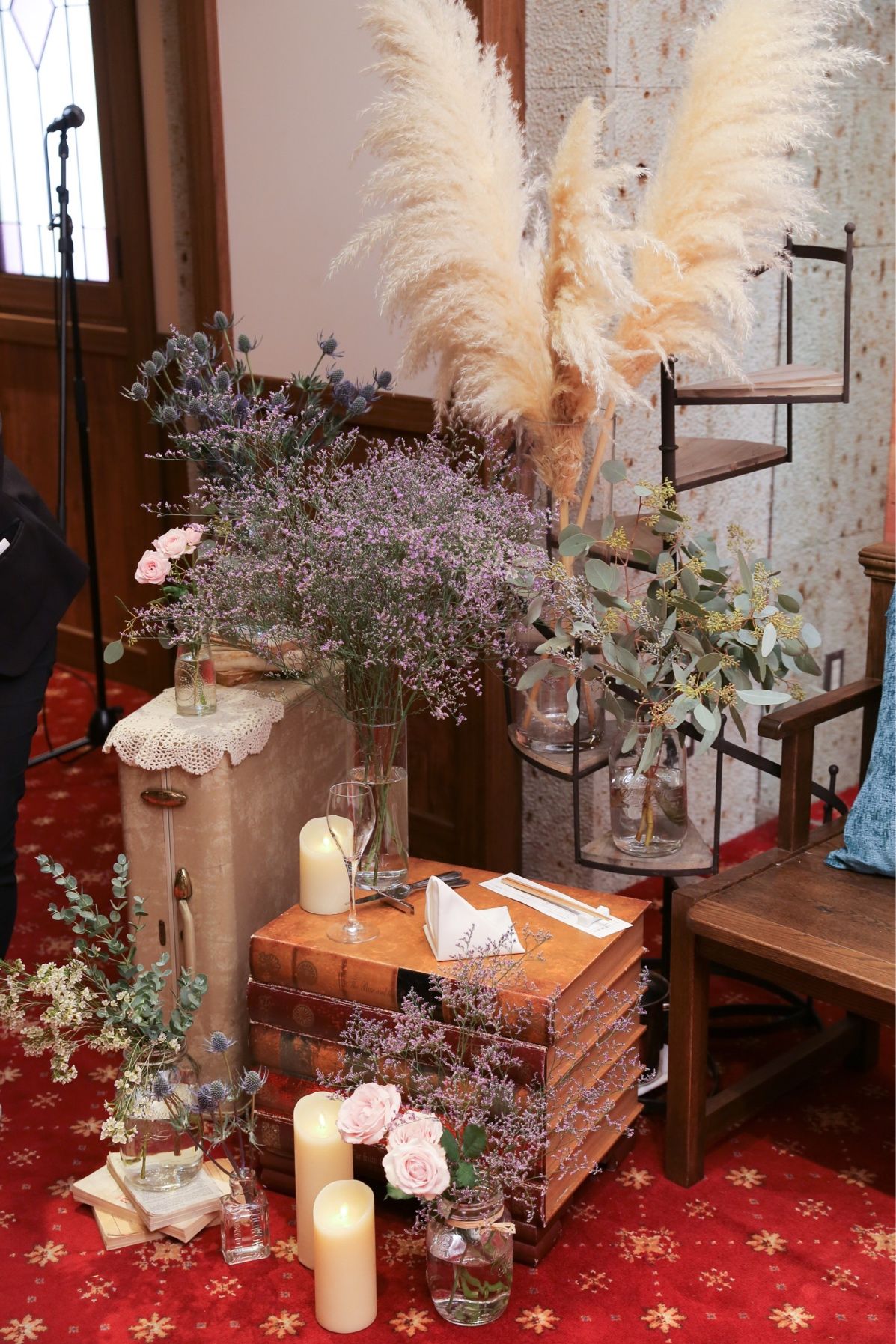 使用した装花はエリンジューム、ポポラス、ユーカリ、パンパスグラスです。
