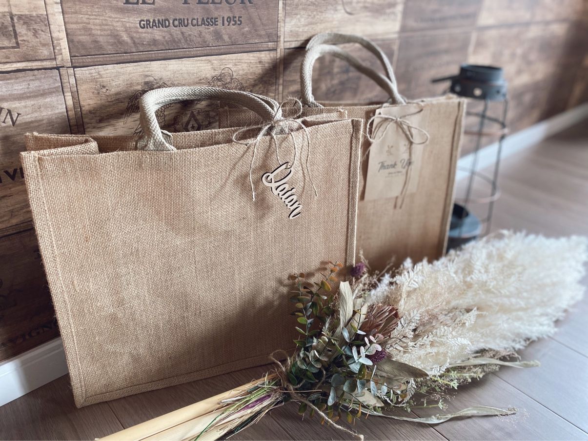 引き出物のバッグはジュートバッグ にしました。